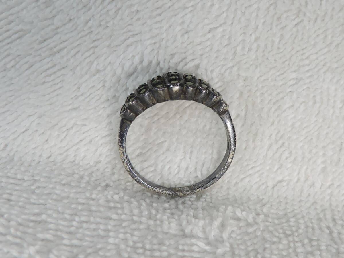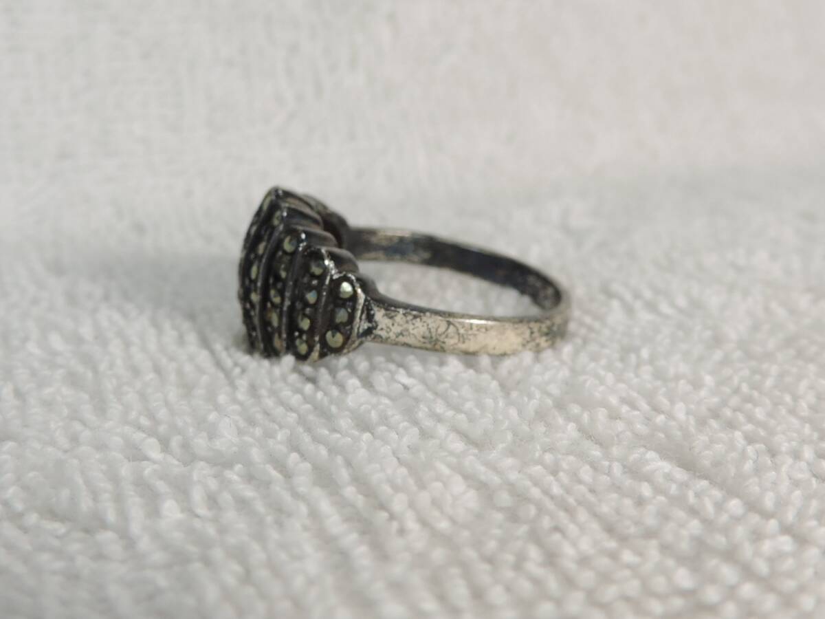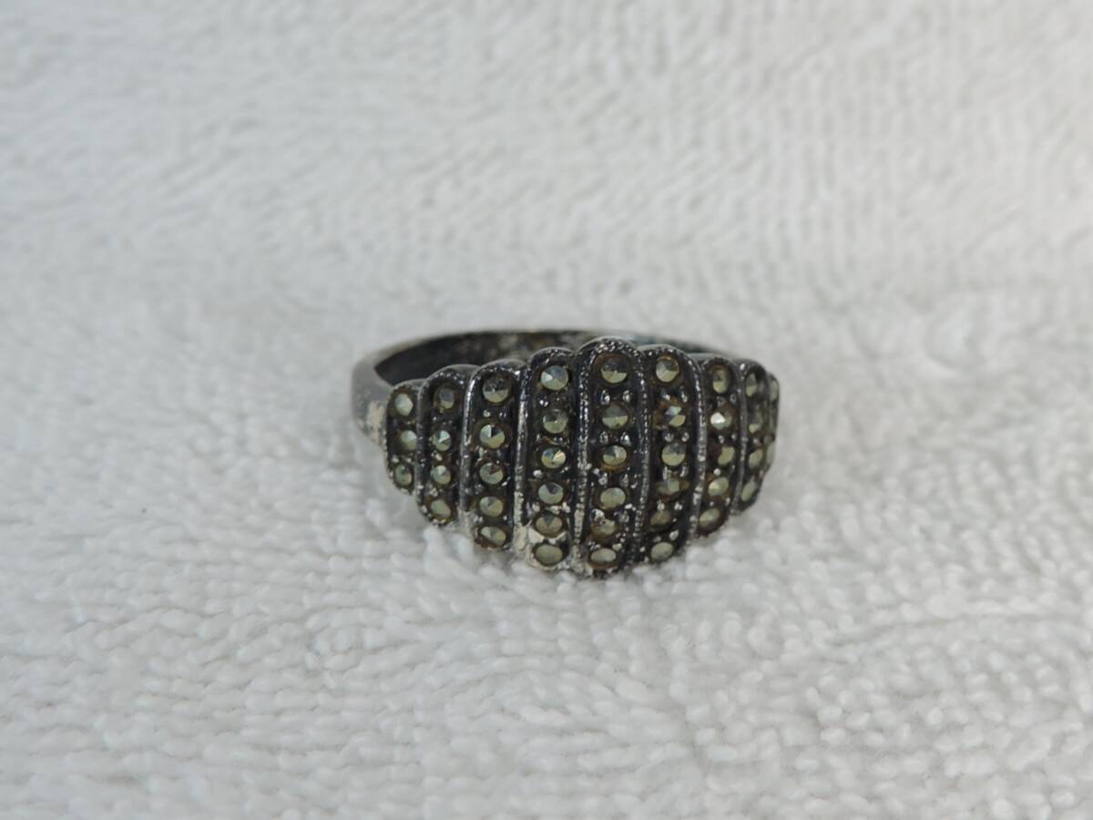 ヴィンテージ・シェル形状のストーン装飾リング約15号・925刻印有りレディース指輪・約4.0g