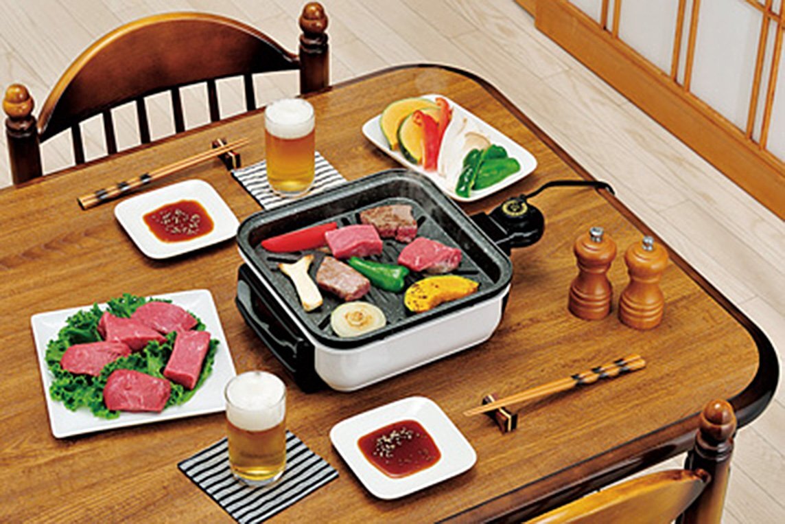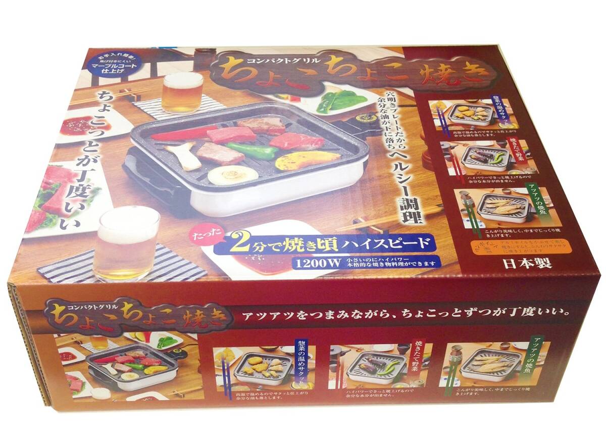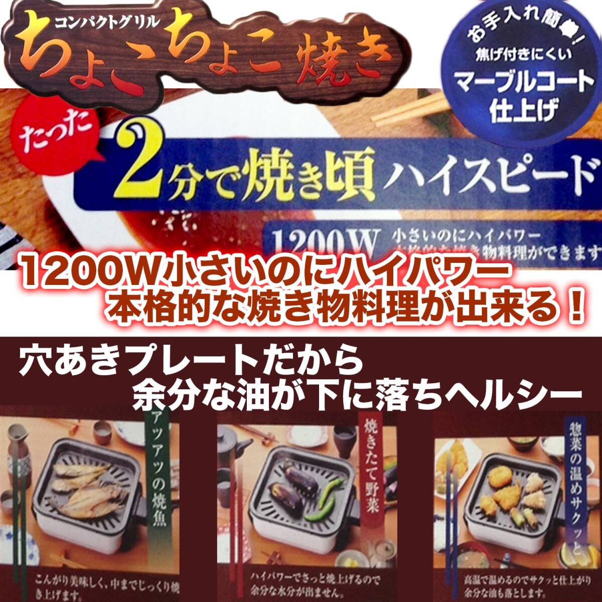 商品紹介 卓上でちょこちょこっと焼けるコンパクトグリル。 少人数用に最適サイズ。 テーブルを広々使えるコンパク設計です。 小さいのにハイパワー1200W。ハイスピード2分で焼き頃加減になります。 プレート表面は、焦げ付きにくく、こびり付きにくいマーブルコート仕様です。 本体兼用水受け皿になっているので、煙が出にくくご家庭でも安心。 総菜の温め直しに最適。サクサクカリカリに仕上がります。 穴あきプレートだから余分な油を落としてヘルシー調理。 アルミホイルをかぶせてオーブン調理。焼きなす、干物もふんわり焼き上げます。 より ●プレートの表面はマーブルコート仕様なので焦げつきにくい、こびりつきにくい、傷つきにくい ●化粧箱入り
