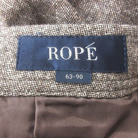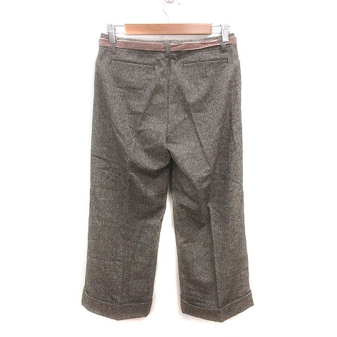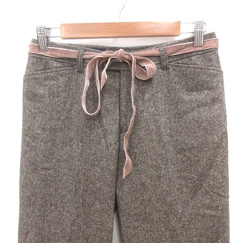 ロペ パンツ クロップド ロールアップ ツイード ウール カシミヤ混 ウエストマーク リボン 63-90 茶 ブラウン 白 ホワイト レディース