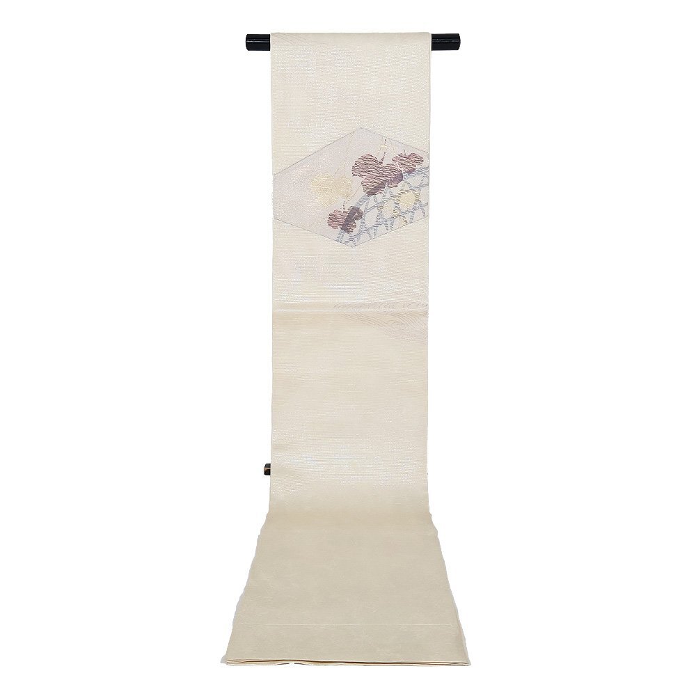 | 紗 西陣織袋帯 ベージュ・銀箔地 蔦の葉・流水 仕立て上がり | |