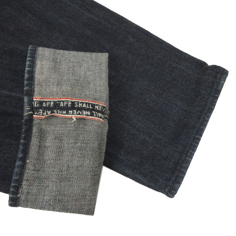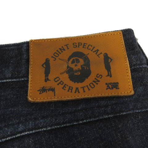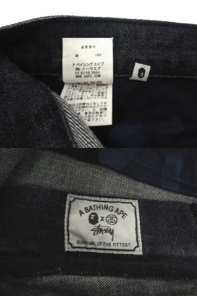 【仕様】アベイシングエイプ A BATHING APE×ステューシー STUSSYコラボ ジーンズ デニム セルビッチ 日本製 前後にポケットあり ジップフライ