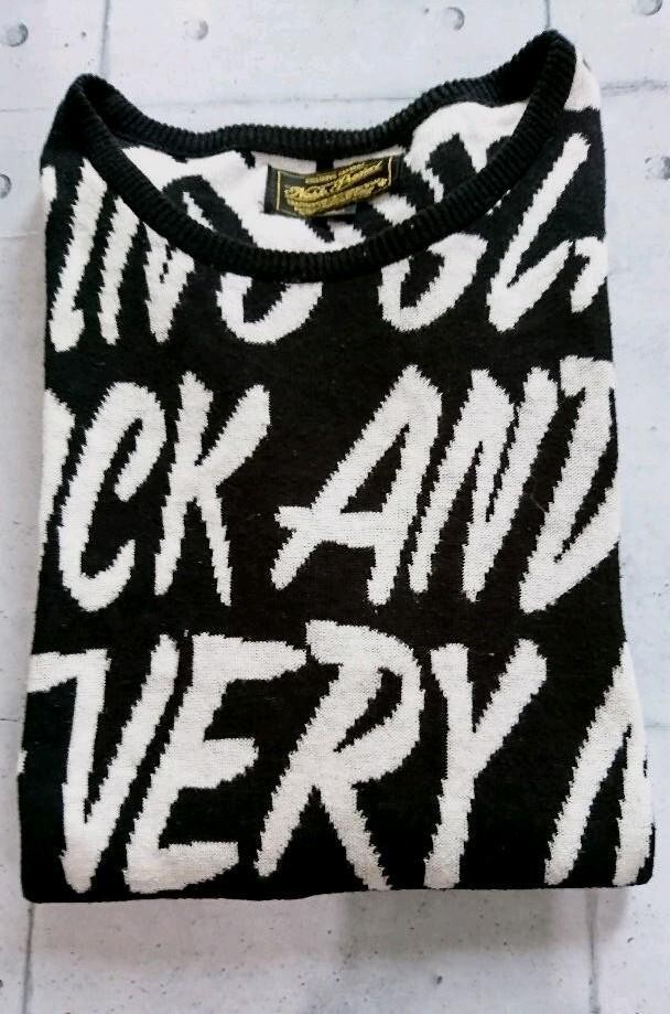 ●昭和末期から平成初期を思い出させるレトロな総柄ニットです。綿×アクリル。6年位前に新品で購入しました。シルエットはゆったり目。このダサ目のニットに黒のワイドスラックスやローファー合わせて着用してました。