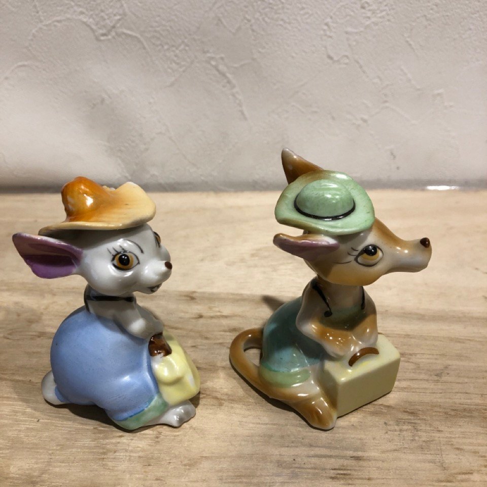 m18 ねずみ 馬 鼠 2個セット 焼物 陶器 磁器 雑貨 置物 昭和レトロ インテリア ビンテージ