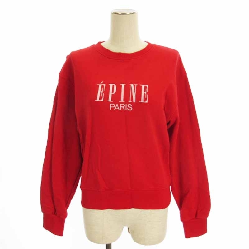 エピヌ epine 良品 トレーナー スウェット 長袖 クルーネック ロゴ刺繍 プルオーバー コットン 赤 レッド ■FF レディース