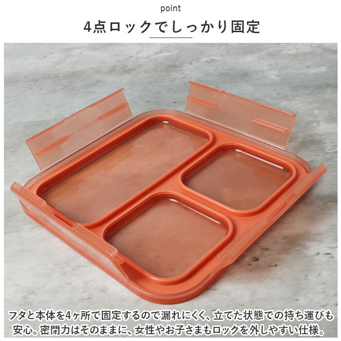 | 商品説明 | ・・カバンの中で立てて持ち運べる!薄型弁当箱「Mee by FOODMAN」500mlサイズが登場。 ・【荷物が増えず、通勤・通学にぴったり】 ・厚みわずか3.5cmのコンパクトサイズ。バッグやリュックに立ててかさばることなく収納できるので、ランチトートなどを別で持ち歩かなくても大丈夫! ・【汁漏れしにくいWシーリング構造】 ・本体&中仕切りをシーリングする「Wシーリング構造」で、汁漏れをガード。中仕切りのシーリングは、各スペースの汁移りやおかずの味移りも防止。 ・【4点ロックでしっかり固定】 ・フタと本体を4ヶ所で固定するので漏れにくく、立てた状態での持ち運びも安心。密閉力はそのままに、女性やお子さまもロックを外しやすい仕様。 ・【ワンプレートで盛り付けに悩まない!】 ・一体型の固定された中仕切りを装備。仕切りに合わせて詰めるだけで、簡単にお弁当が完成☆盛り付けに悩むことなく、楽しく作れるのが嬉しい! ・【美味しく見えるホワイトカラー】 ・内側の器部分は、食材の色が際立つホワイトカラー。お弁当がより美味しく見えて、毎日のランチタイムがもっと豊かに。 ・【食べやすく、すくいやすい形状】 ・おかずやご飯をすくいやすい、丸型のコーナー。汚れも溜まりにくく、簡単に洗浄OK。 ・【電子レンジも食洗機も】 ・フタを外して電子レンジでの温め&食洗機の使用が可能。オフィスなどでも温かいワンプレートランチを味わえ、お手入れ時間も短縮。 ・【お手入れしやすい一体成形パッキン】 ・パッキンは一体成形タイプ。フタとの間に汚れが入りにくく、パッキンを取り外して洗う手間も不要。 ・【女性やお子さまに最適なサイズ感】 ・容量は500ml。お茶碗約2.7杯分のご飯が入る大きさ。(※お茶碗約1杯を180mlで計算した場合) ・【選べるカラー】 ・年代問わず使いやすい、ナチュラルなクリアカラー。ご家族色違いで揃えるのもおすすめ! |