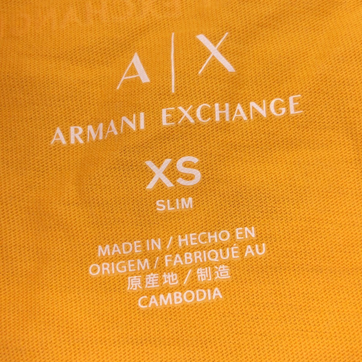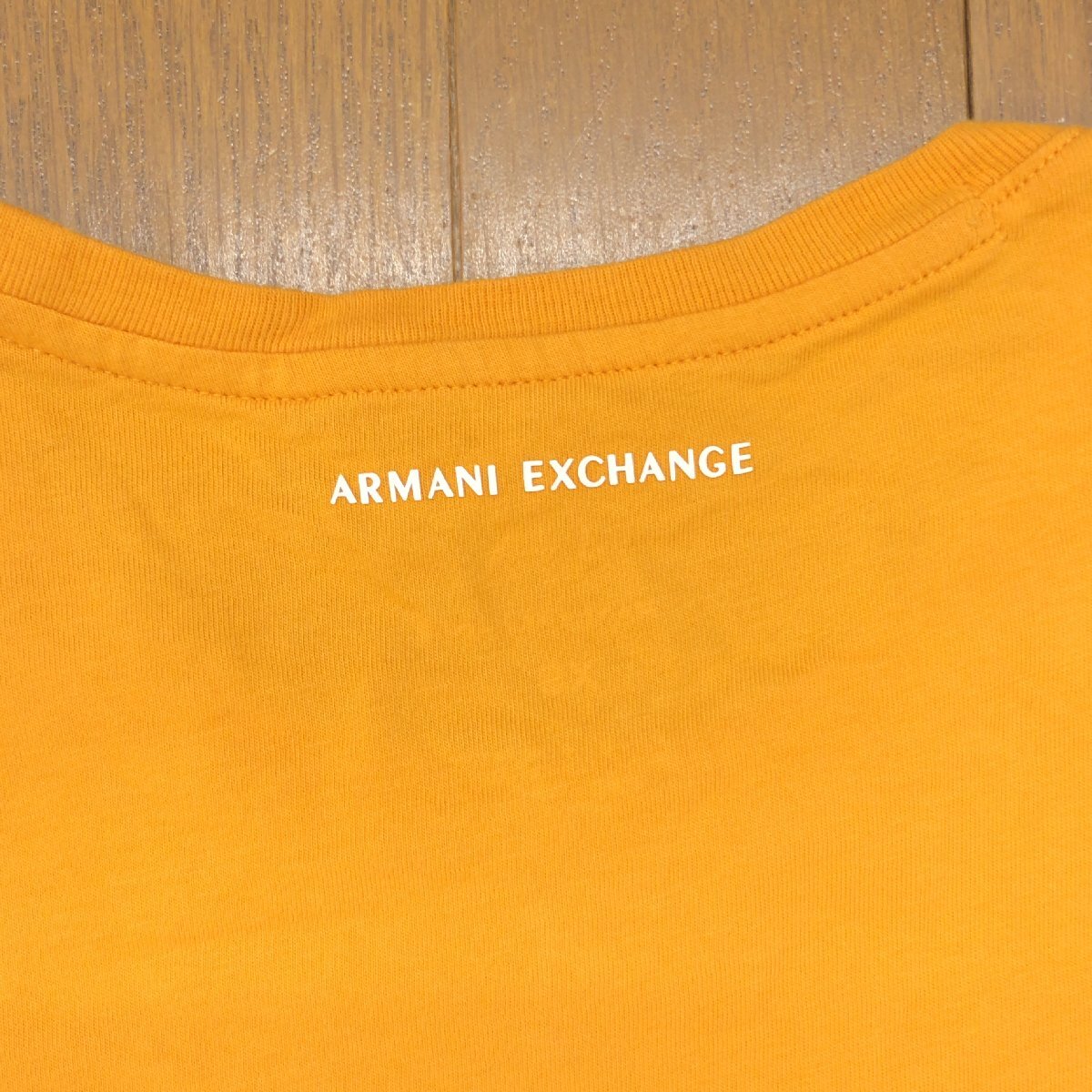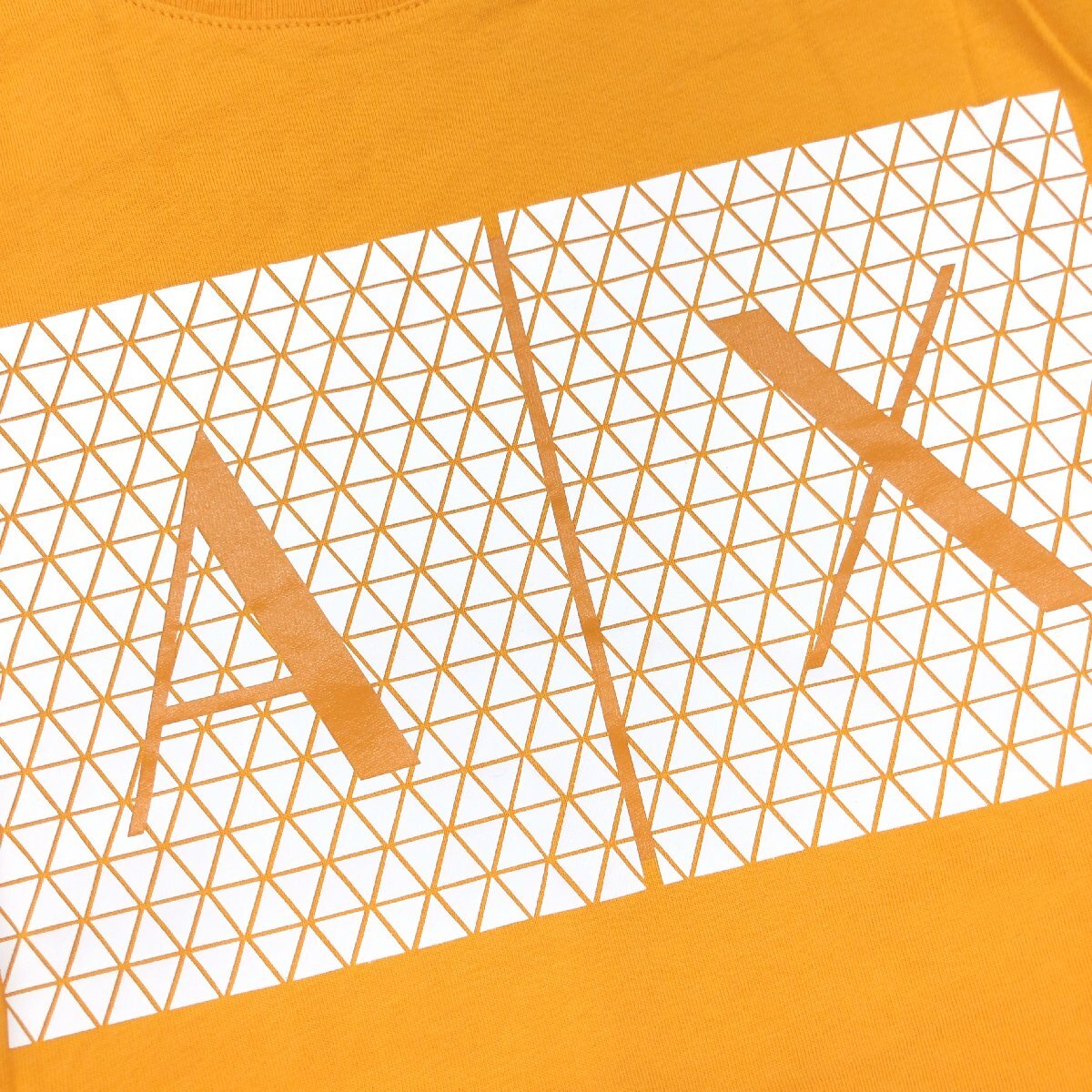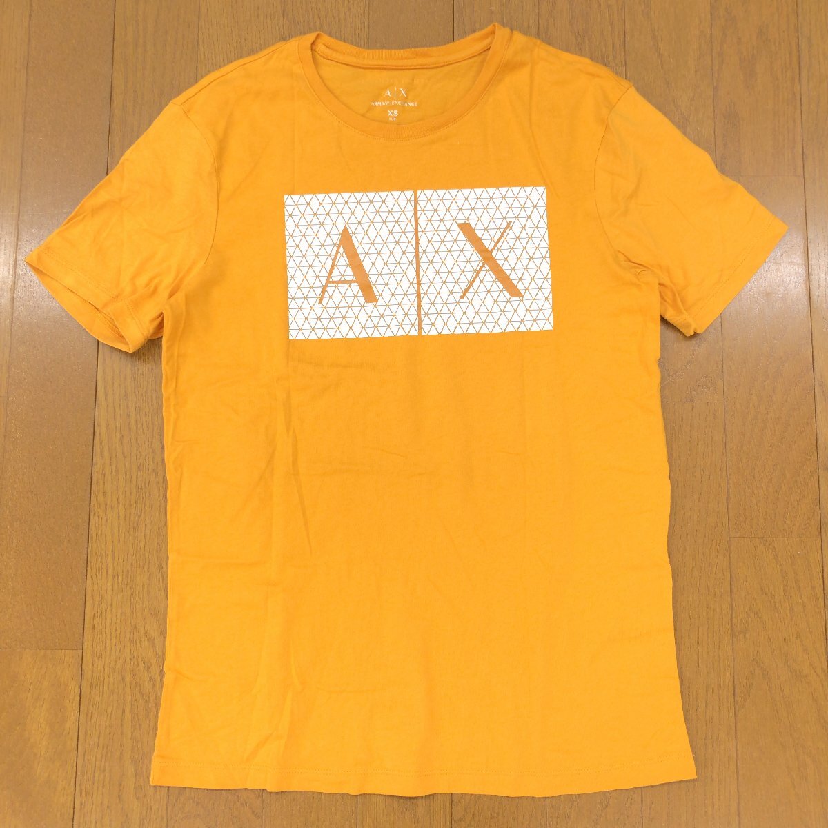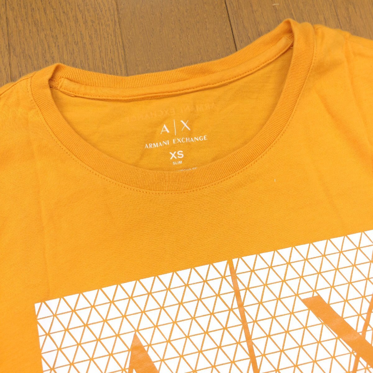 美品 A/X ARMANI EXCHANGE アルマーニ スリムフィット ダイヤモンドカット スクエアロゴプリント Tシャツ XS オレンジ系 半袖 国内正規品