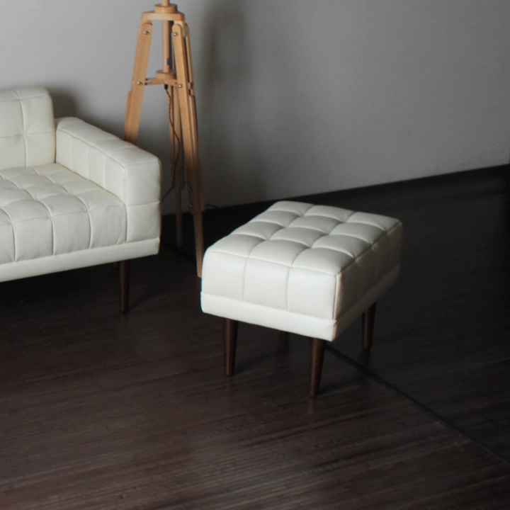 高級感と上品さを兼ね備えた、イタリア社製本革のオットマンです。 職人が手間と時間がかかる技術で作り上げたオットマンです。 おしゃれなパッチデザインが施され、 シンプルでモダンなおしゃれな雰囲気を醸し出しています。 コンパクトで、スタイリッシュな外観が特徴です。 イタリア社製の高品質の本革を使用し、洗練されたモダンなデザインが特徴です。 高級感があり、落ち着いた印象を与え、大人の空間にふさわしいデザインとなっています。 スリムでシンプルなフォルムを活かしながら、様々なシーンに合わせてお使いいただけます。 応接室や会議室、オフィスや待合室、ロビーにもぴったりです。 | サイズ・仕様 |