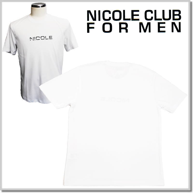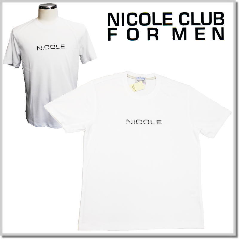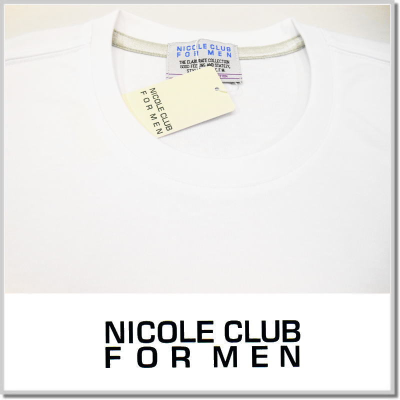 新品未使用! ニコルクラブフォーメン NICOLE CLUB FOR MEN ロゴ刺繍半袖Tシャツ 5264-9004-09(WHITE)-48(L) カットソー