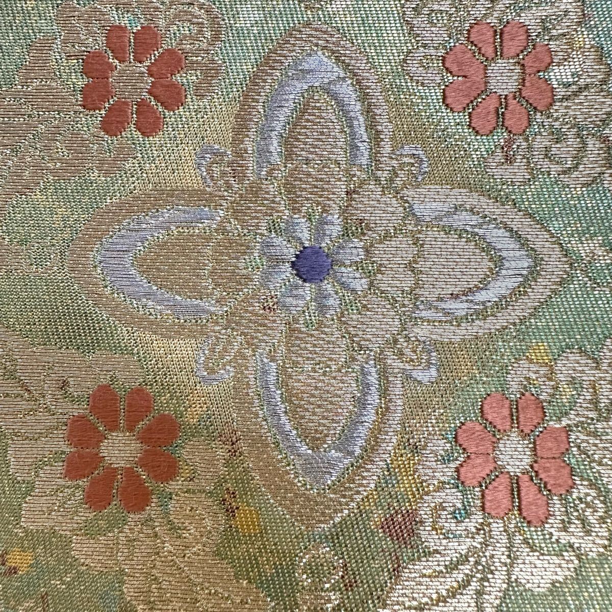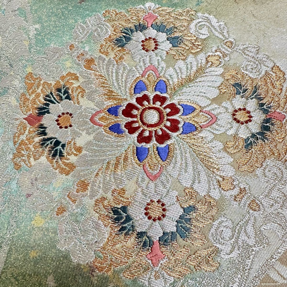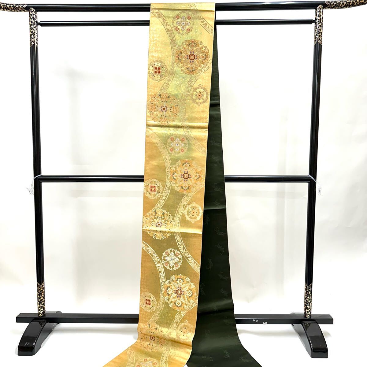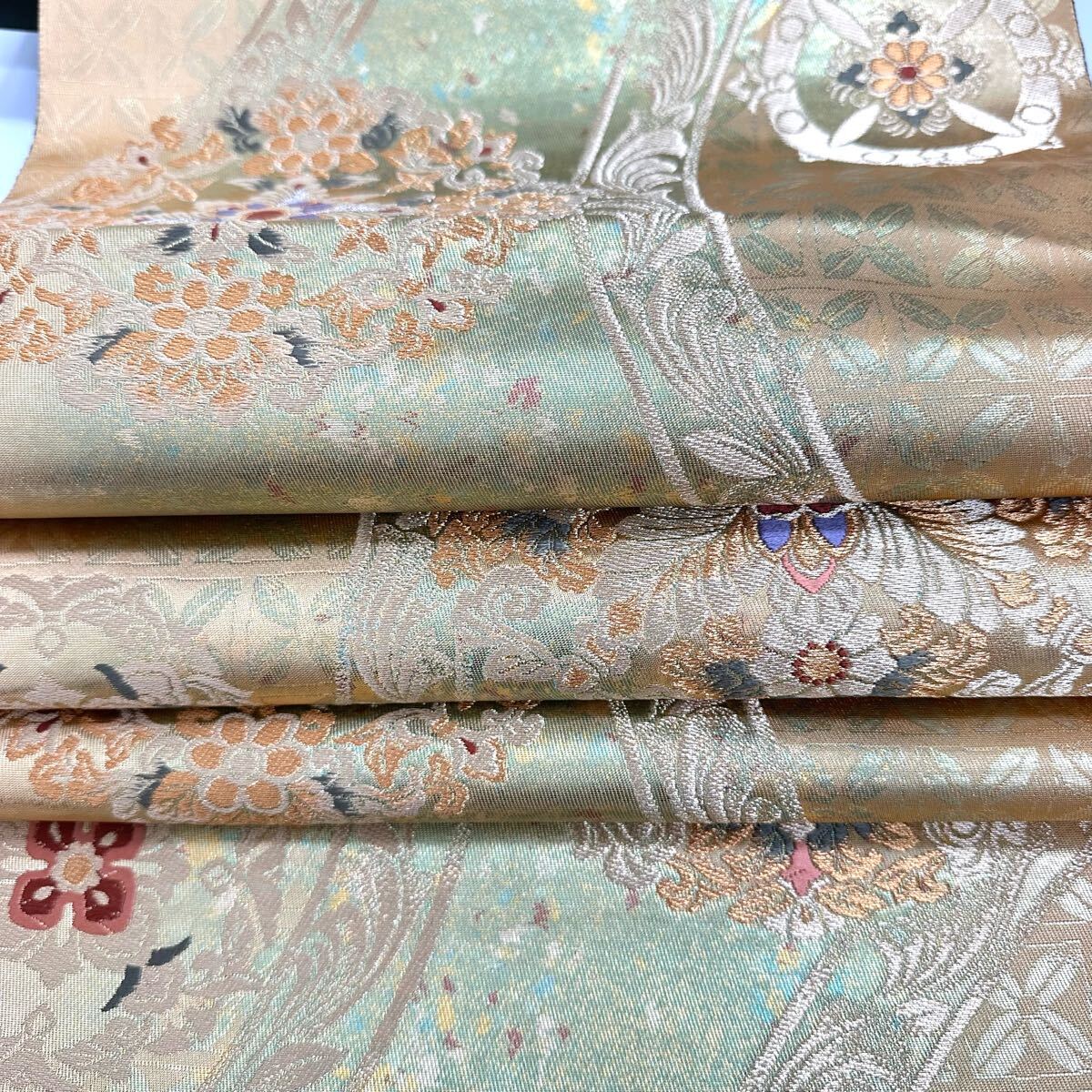 【七福】c660 逸品 高級品 正絹 袋帯 六通 華文 ゴールド 金糸 銀糸 刺繍 豪華