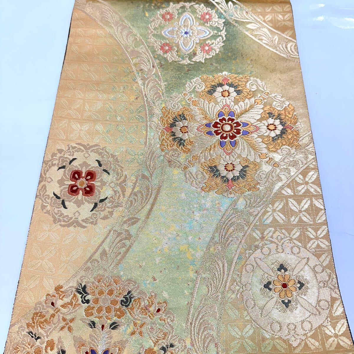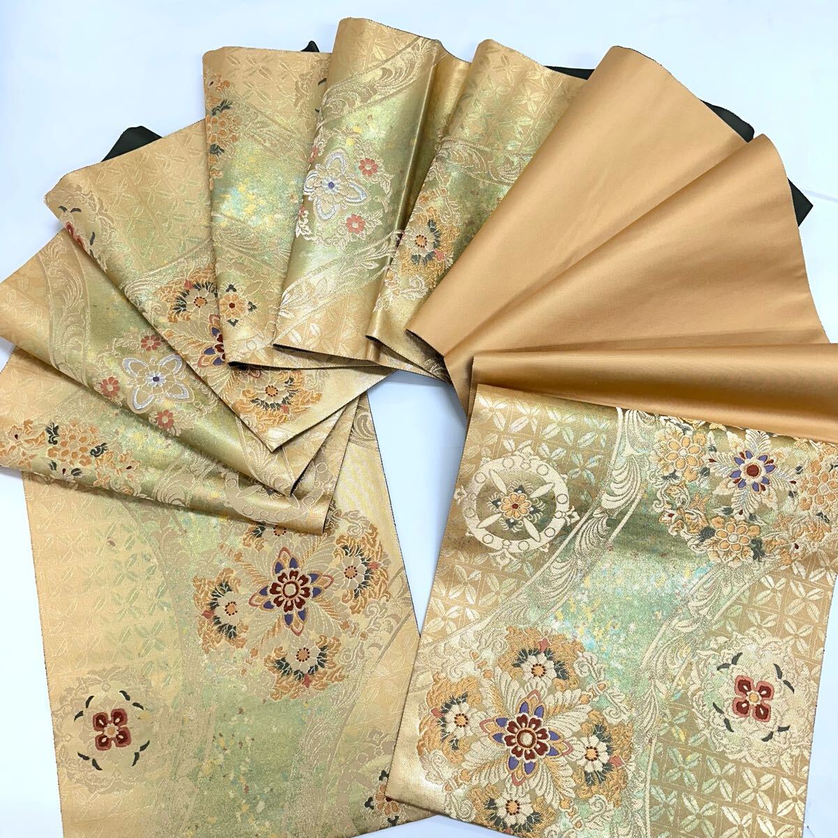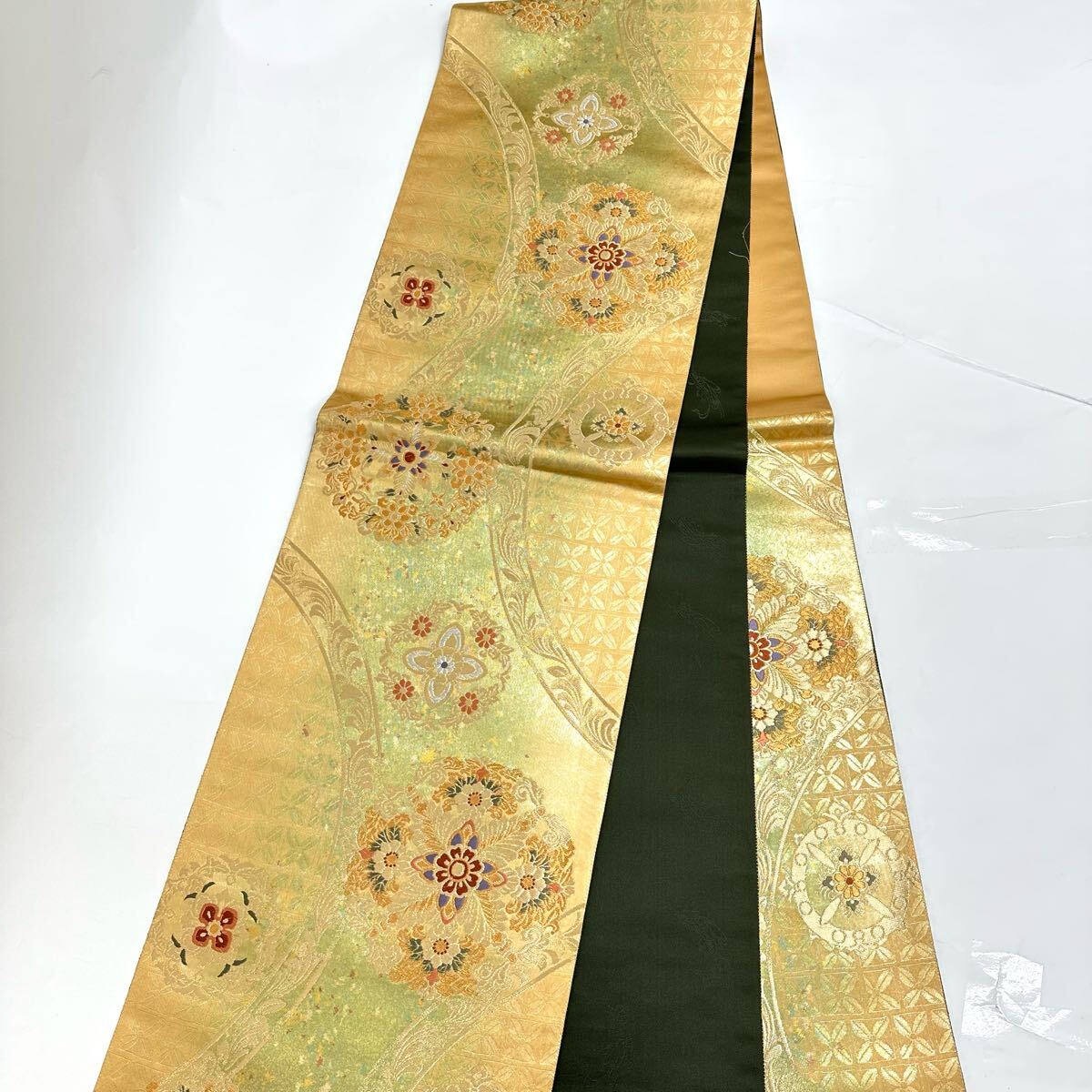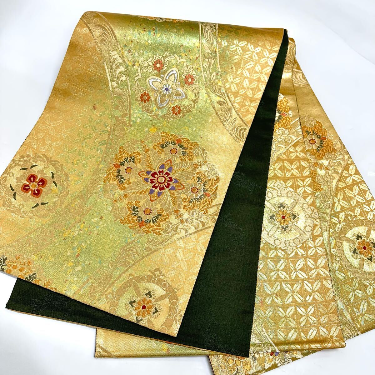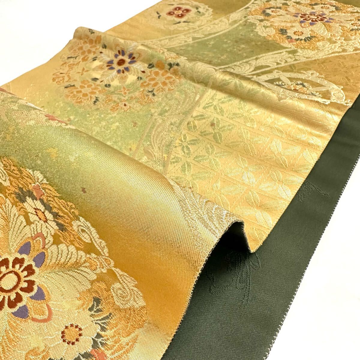 【七福】c660 逸品 高級品 正絹 袋帯 六通 華文 ゴールド 金糸 銀糸 刺繍 豪華