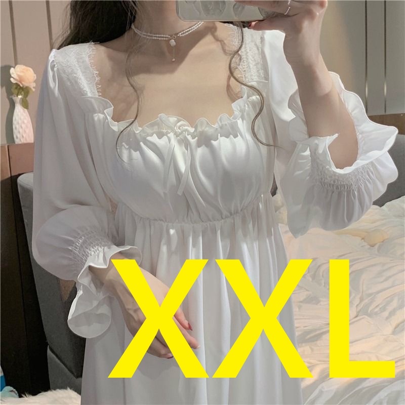 【56】白・ナイトウェア・ルームウェア・ネグリジェ・XXL