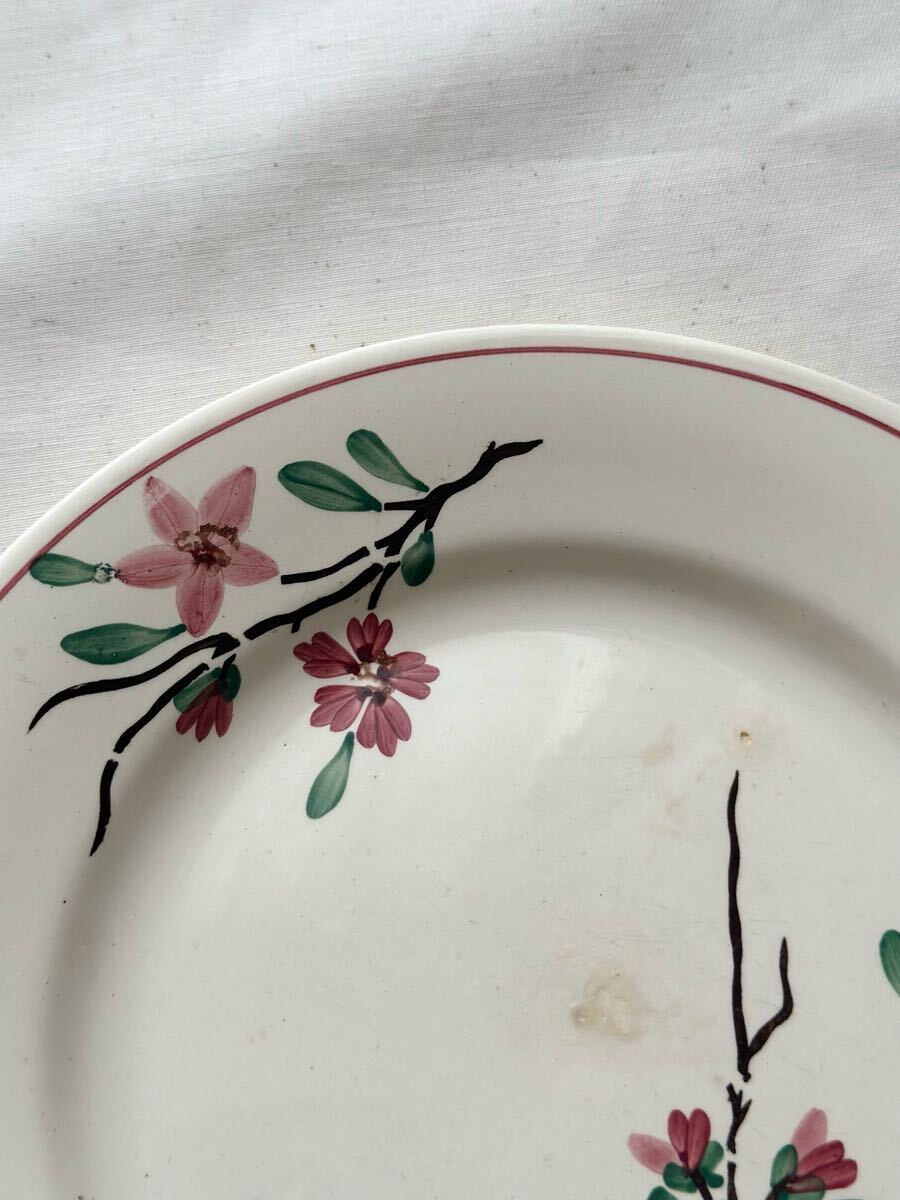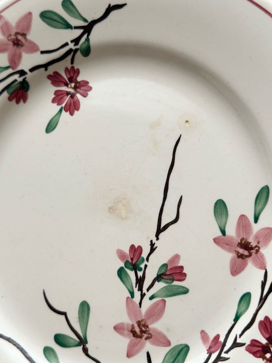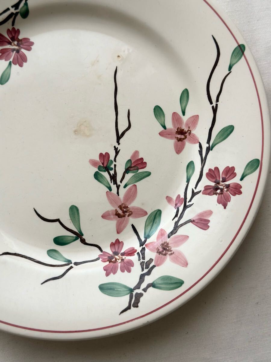 フランス アンティーク 皿 Sarreguemines サルグミンヌ / “AIGUES-VIVES” 美しい桜のデザートプレート(平皿 ブロカント)