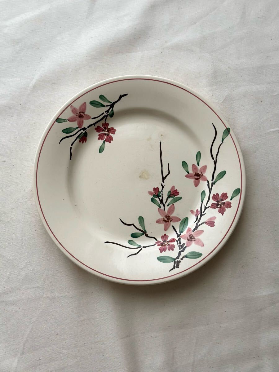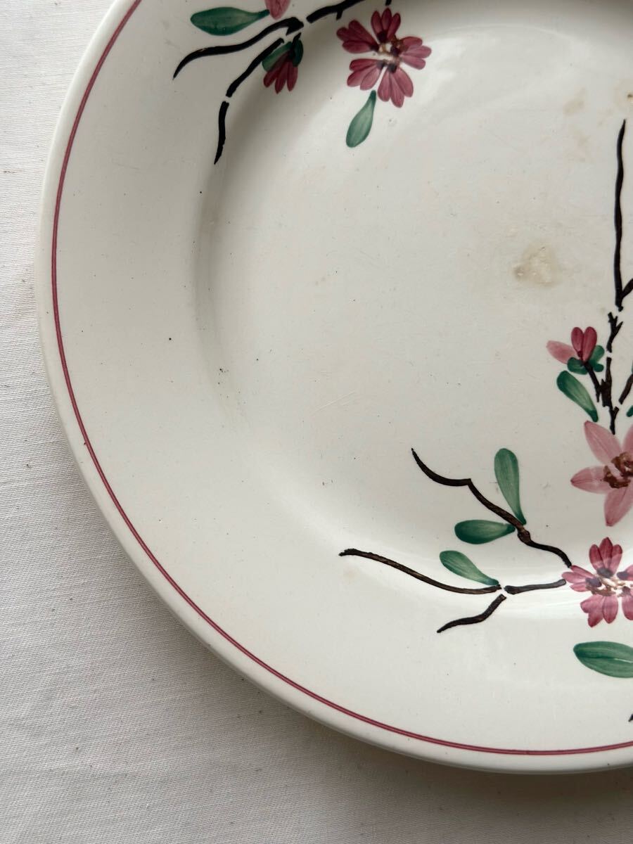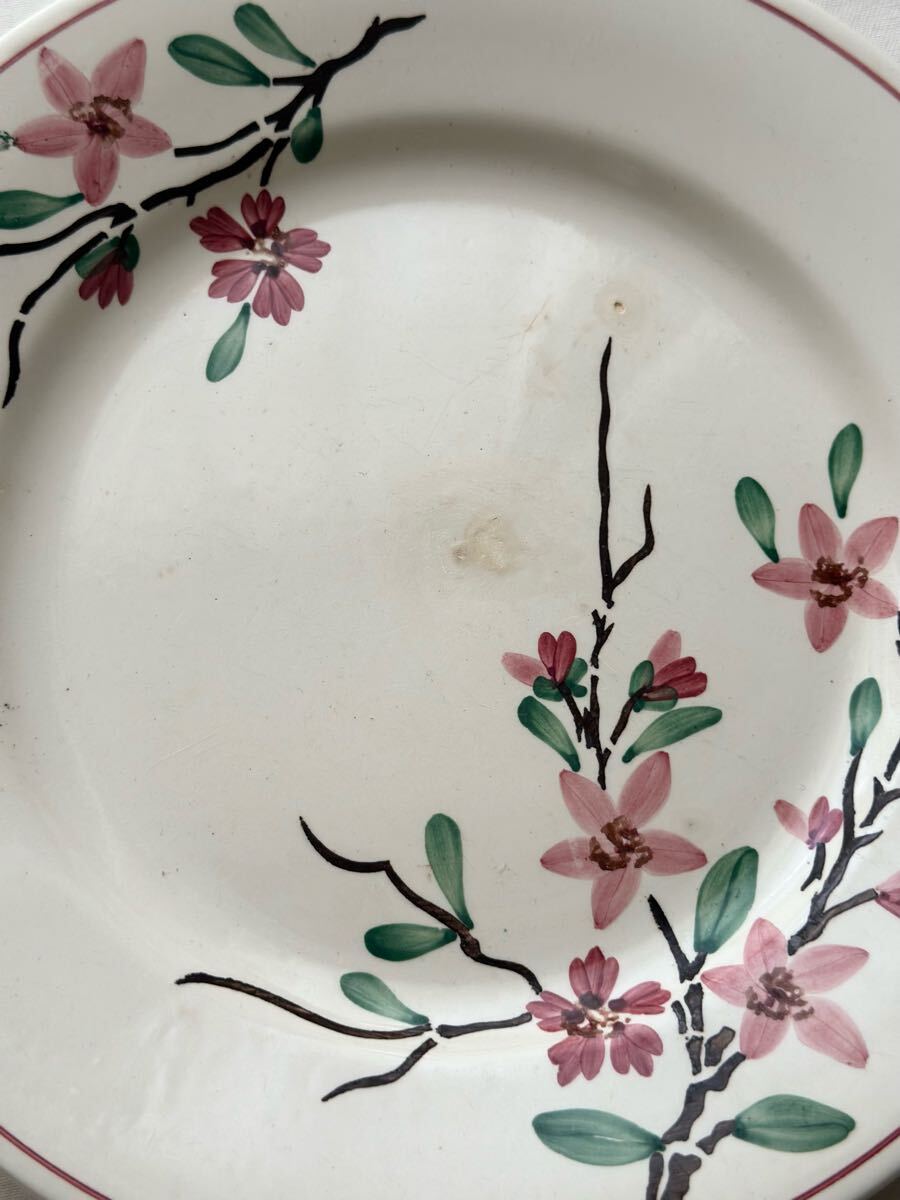 フランス アンティーク 皿 Sarreguemines サルグミンヌ / “AIGUES-VIVES” 美しい桜のデザートプレート(平皿 ブロカント)