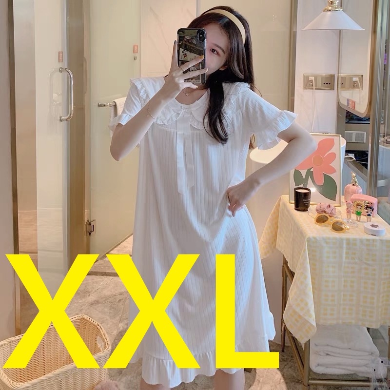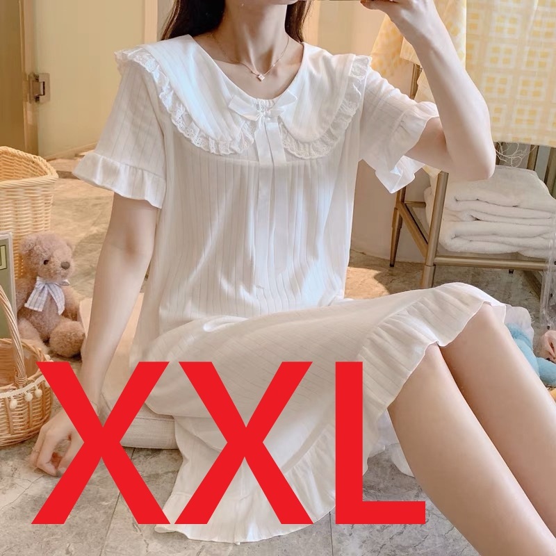 【57-1】白・ナイトウェア・ルームウェア・ネグリジェ・XXL
