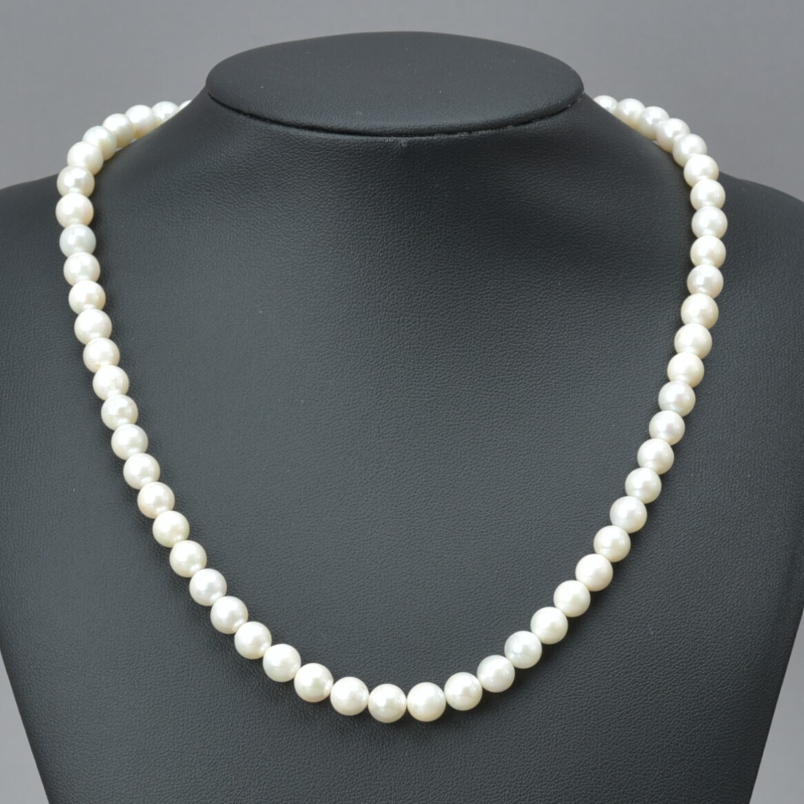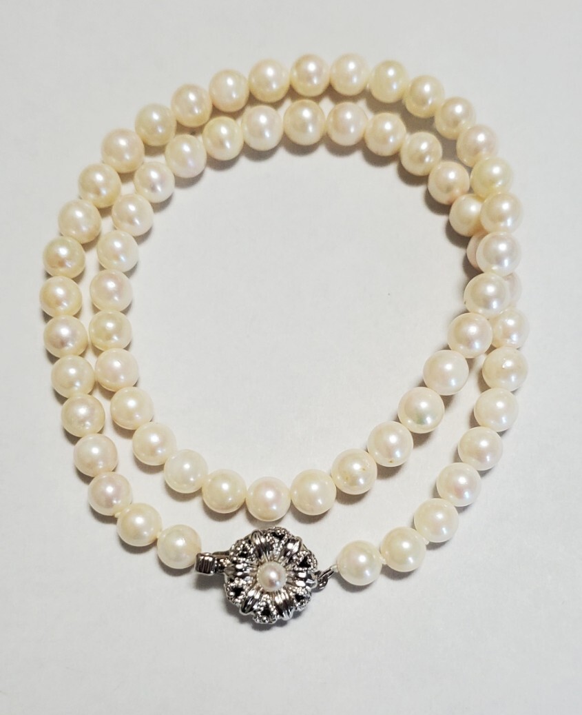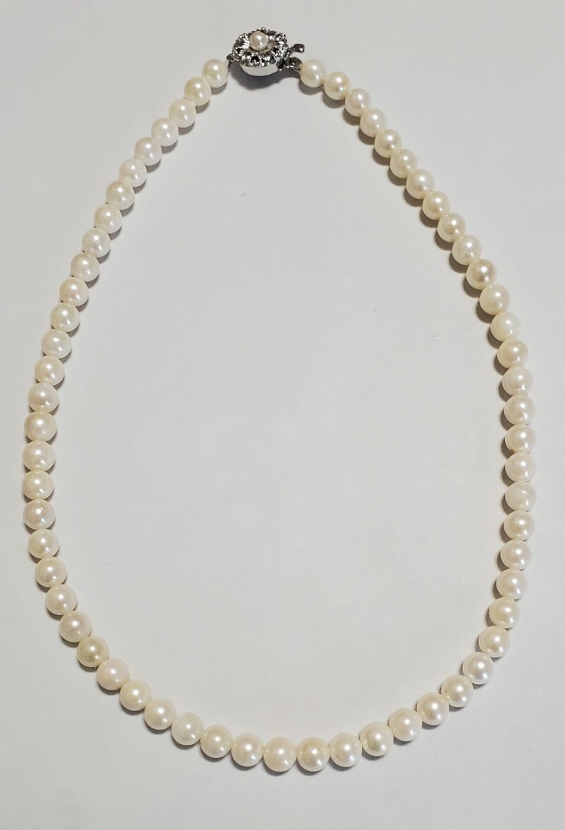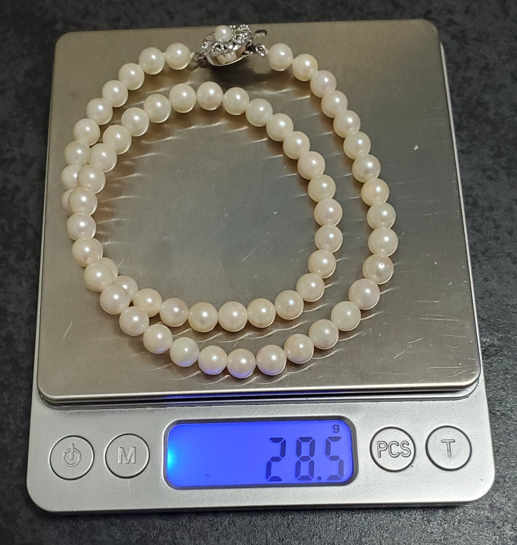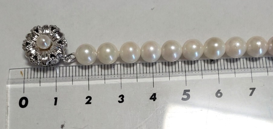 本真珠 SILVER シルバー刻印 ネックレス SV パール レディース アクセサリー 6,5-6,8mm 28.5g 長さ42,5cm ホワイト 美品