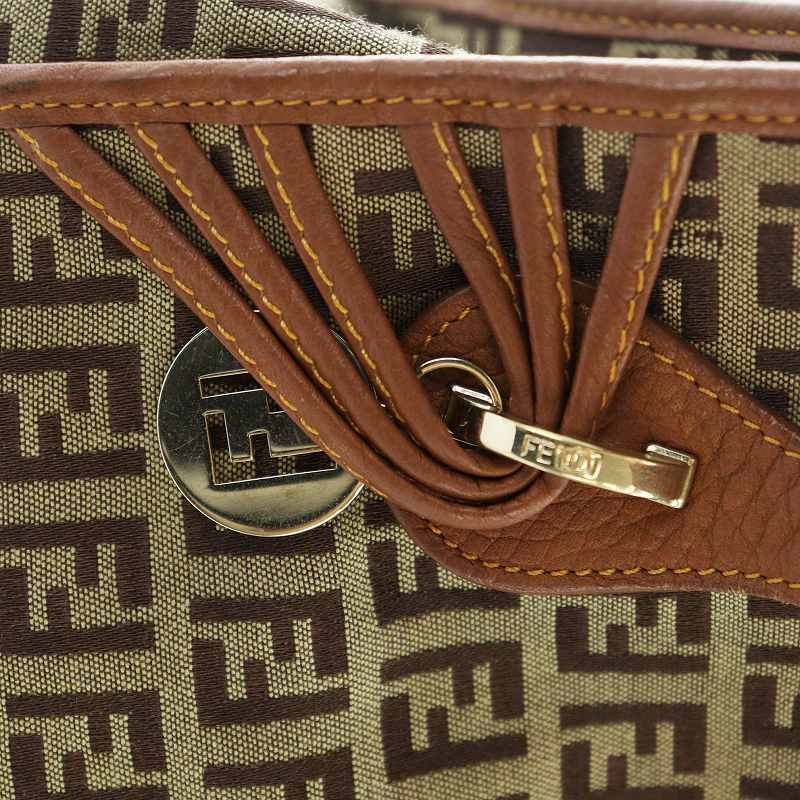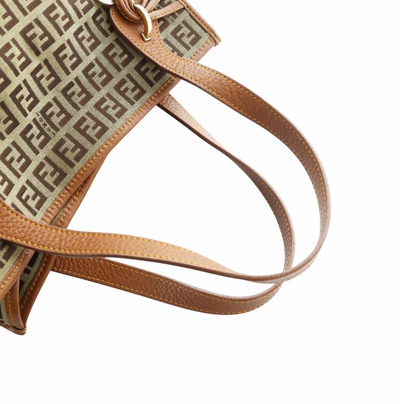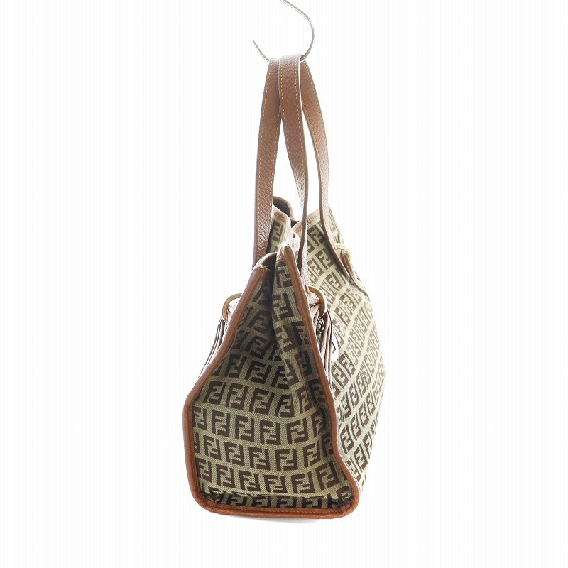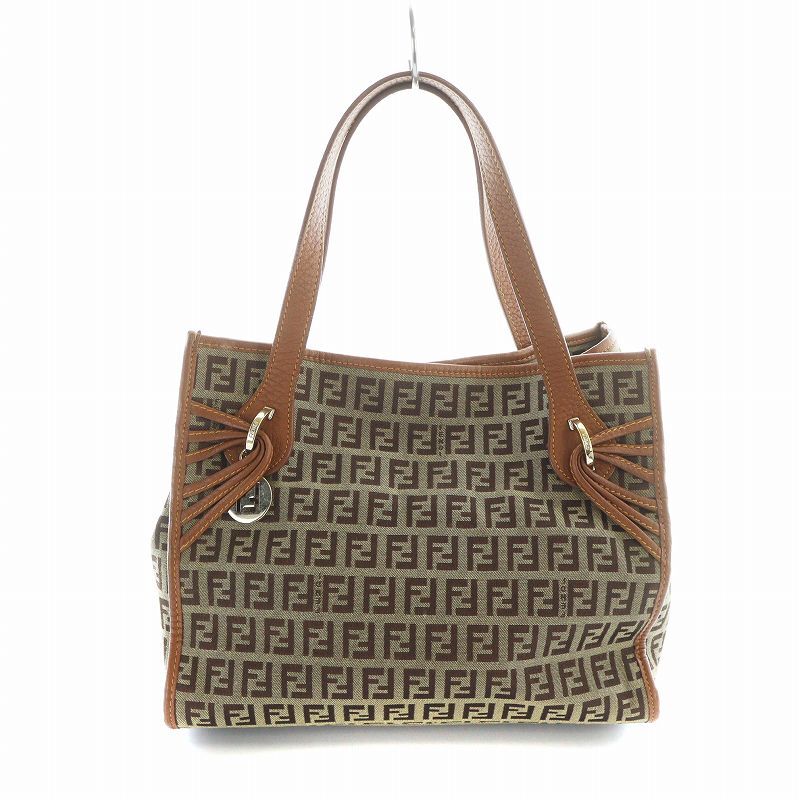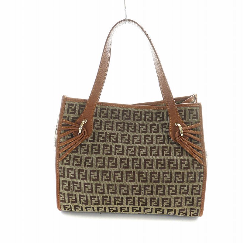 フェンディ FENDI ズッキーノ ハンドバッグ トート キャンバス レザー ロゴ 総柄 茶 ブラウン ■GY18 /MQ ■OH レディース