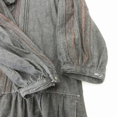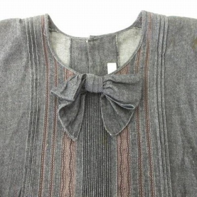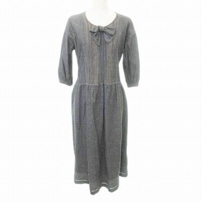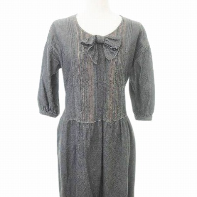 ピンクハウス PINK HOUSE ヴィンテージ VINTAGE 90s デニム ワンピース リボン 七分袖 日本製 ダークグレー レディース