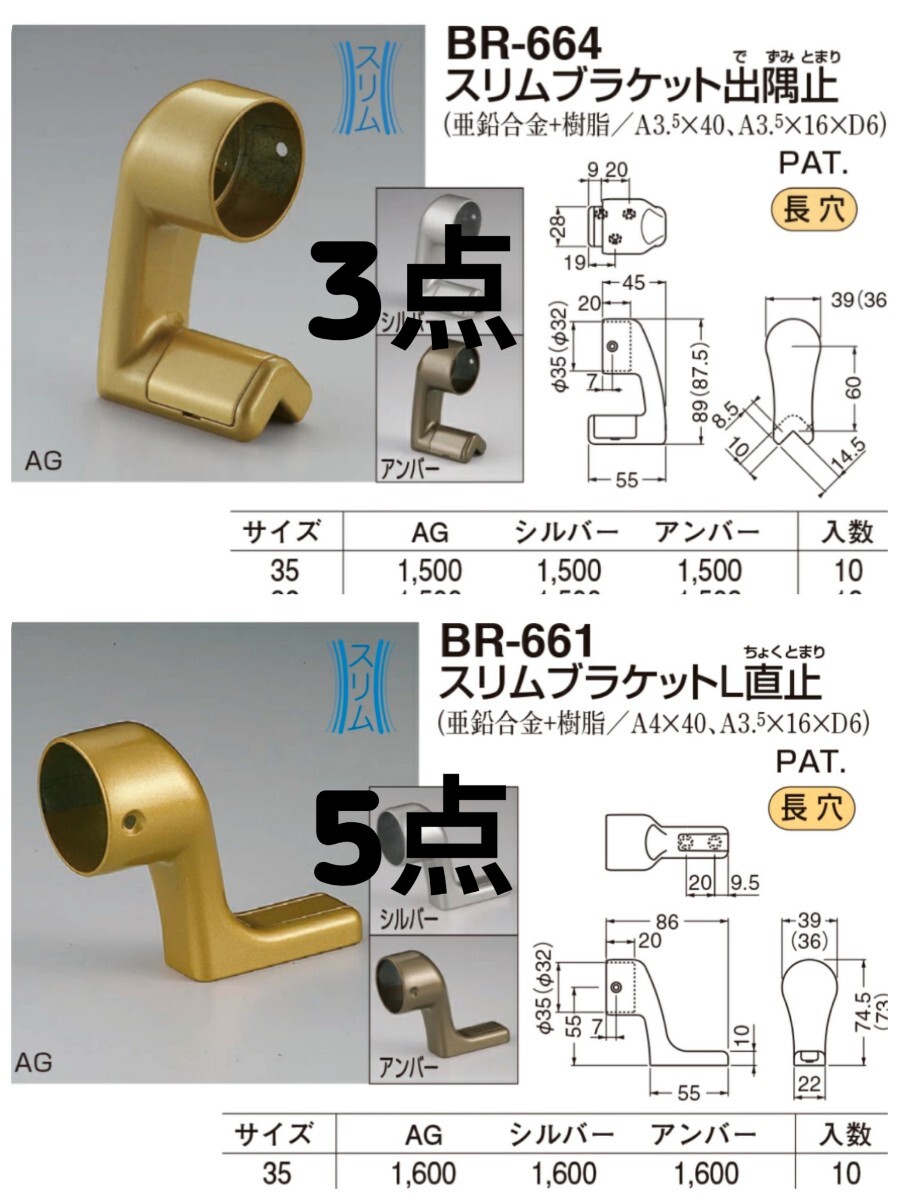 シロクマ 手すり用部品 8個 新品 白熊 スリムブラケットL直止 BR-661/スリムブラケット出隅止 BR-664 アンティークゴールド 手すりパーツ