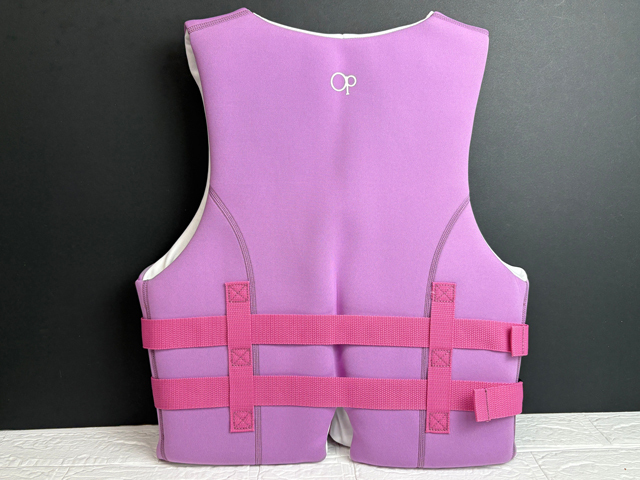 伸縮性、耐熱性、耐水性などに優れたネオプレーン素材のレディースフローティングベスト。