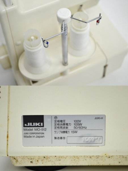 KM697●現状品●JUKI ジューキ MO-512 ロックミシン 外箱・フットコントローラー付き 通電確認のみ