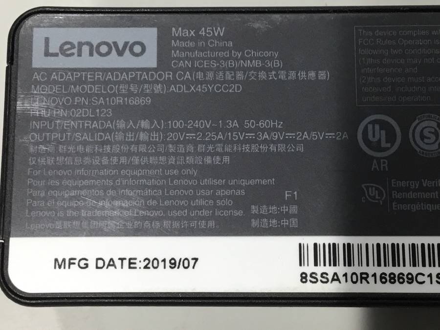 lenovo ADLX45Y 各種 ACアダプタ 20V 2.25A 5個セット Type-C■現状品