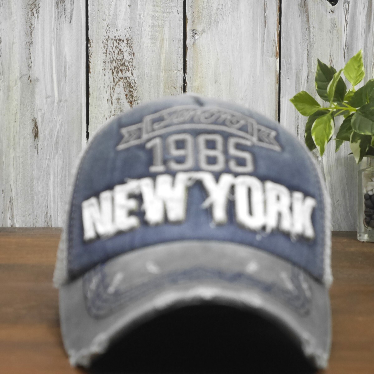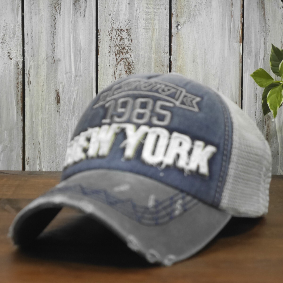 NEW YORK CITY 1985 メッシュキャップ ネイビー グレー ロゴ 色あせ ビンテージ UV対策 サイズ調整可能 送料\450  男女OK