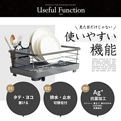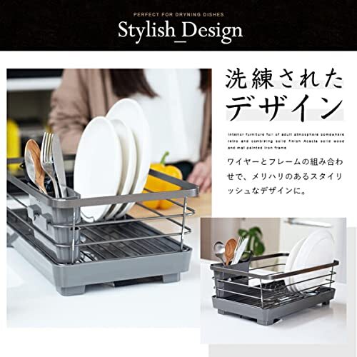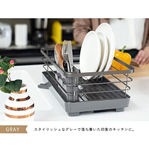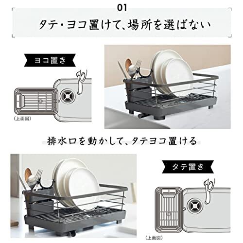 ●システムキッチンに調和する美しいデザイン ●大理石調トップになじむメタリックグレーコーティングでシンク廻りに清潔感を ●タテヨコ自由に置ける水が流れるトレー付き ●用途に合わせて選べる多彩なバリエーション ●防サビ加工ダブルコーティング ●トレー・箸立て・排水口(Ag+抗菌加工)