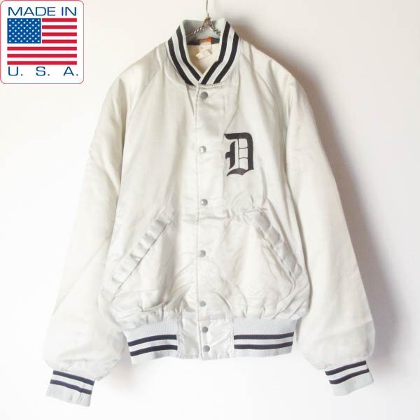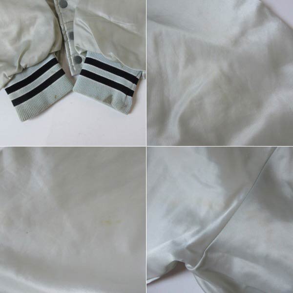 70s-80s USA製 Pla Jac 企業物 サテン スタジャン シルバー系 M アドバタイジング アメリカ製 ビンテージ D151