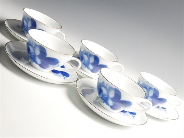 大倉陶園 金彩 岡染 ブルーローズ カップ&ソーサー 5客 K309