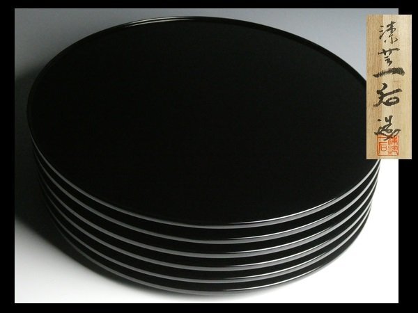 輪島塗 漆芸 一后 造 高級漆器 天然木 漆塗 大型 日乃丸膳 丸盆 懐石膳 会席膳 45.5cm 六膳 共箱 N752
