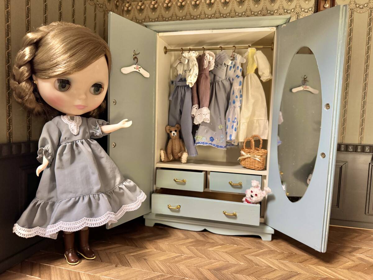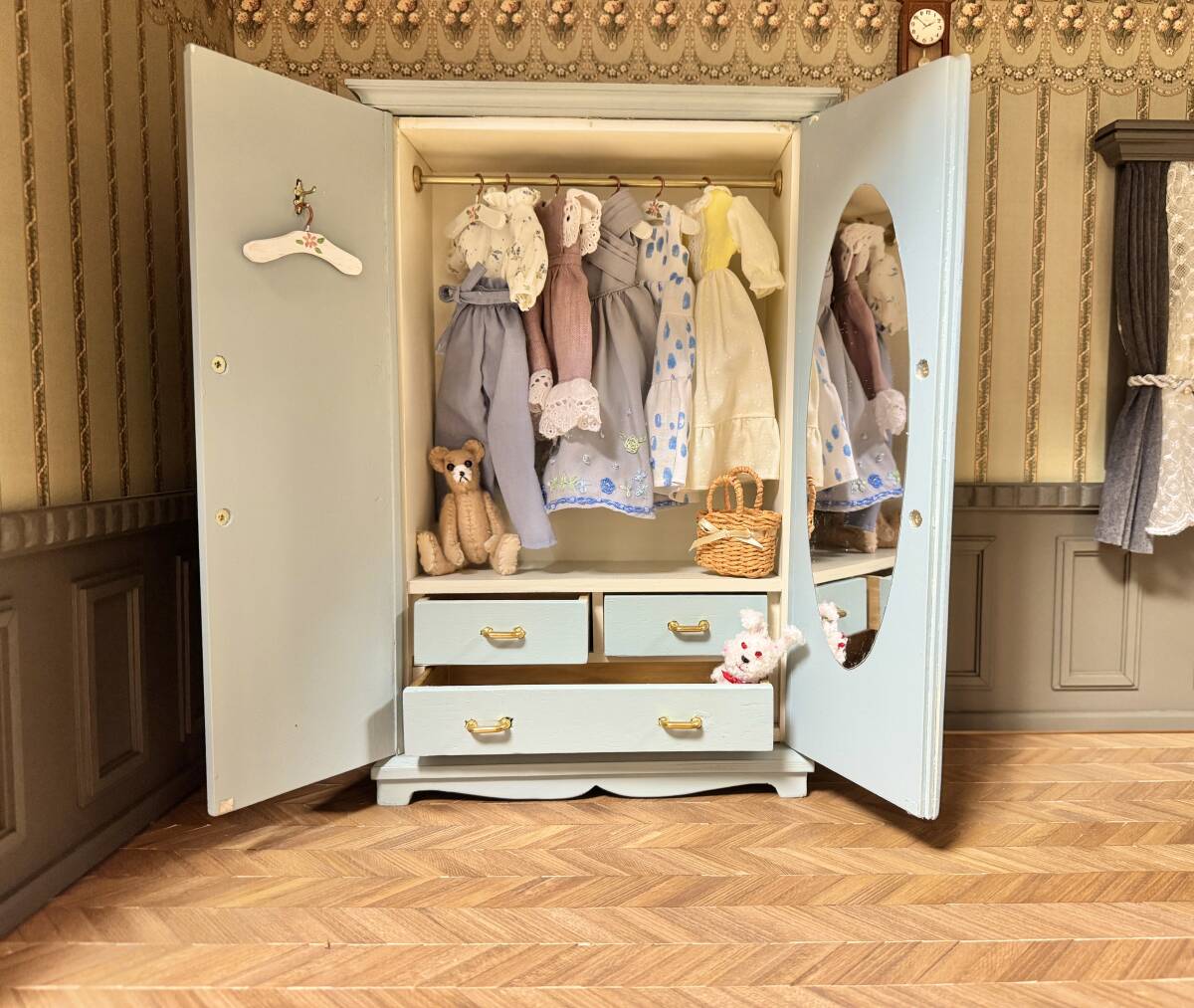 【ドールハウス 1/6&1/8】クローゼット(L) ワードローブ(ネオ ブライス・リカちゃんサイズ)ミニチュア タンス 家具 ファニチャー