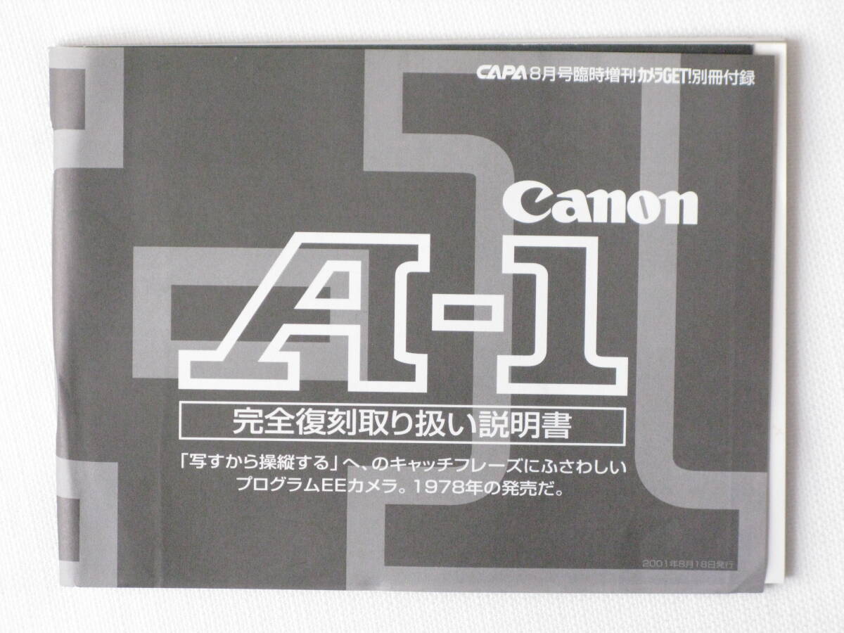 Canon A-1完全復刻取り扱い説明書 「写すから操縦する」へ、のキャッチフレーズにふさわしいプログラムEEカメラ。1978年の発売だ。