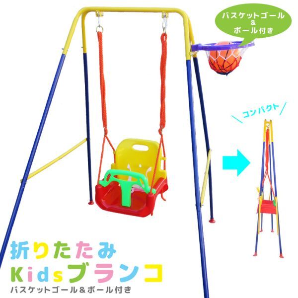 【自宅で遊べる!室内・屋外用キッズブランコバスケットボール&ボール付き】