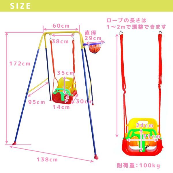 ブランコ 室内・屋外用キッズブランコ 1.7m 子供用ブランコ フレーム付き バスケットゴール ボール お庭ブランコ 幼児用 子供用