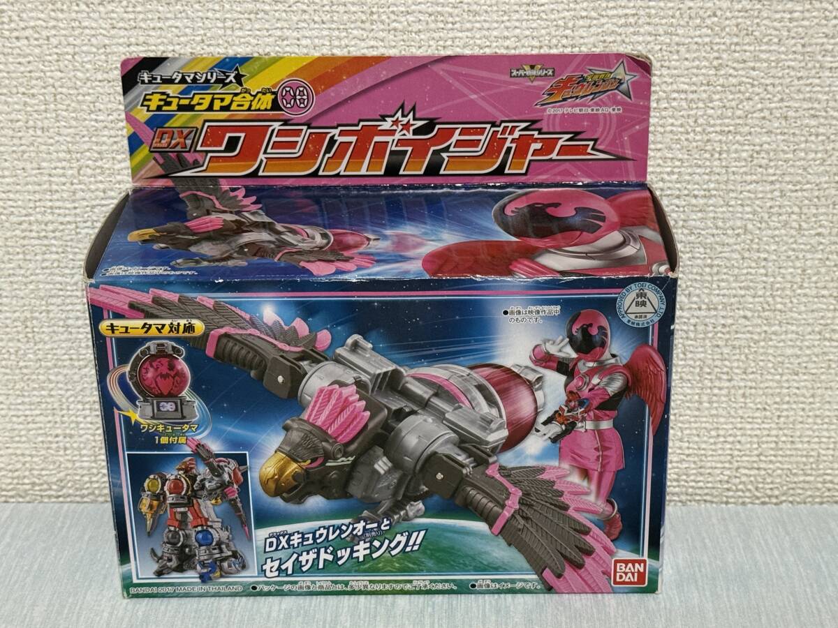 DXキュウレンオー、DXワシボイジャーは一度組み立ててコレクションボックスで飾っていましたが、ごっこ遊びなどでは遊んではおらず比較的に綺麗な状態のものになります。番組終了後、付属の小分けのビニル袋に戻ししまっておりました。付属品全て揃っており、取扱説明書も全て揃っております