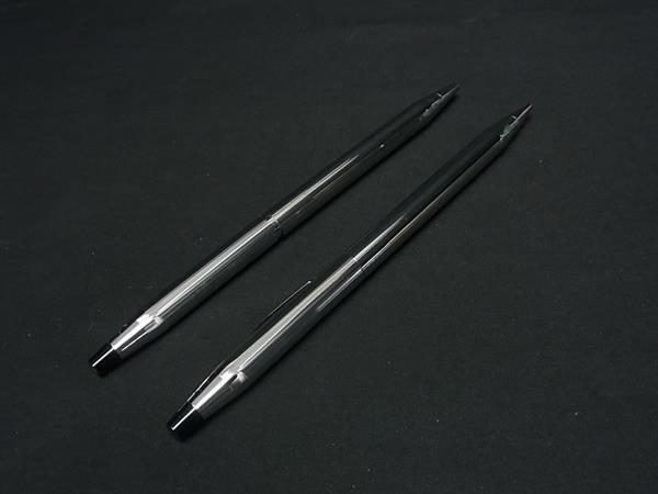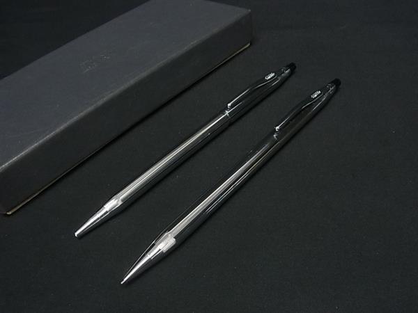 ■美品■ CROSS クロス ツイスト式 ボールペン シャープペン 筆記用具 文房具 2点セット シルバー系 DI7919