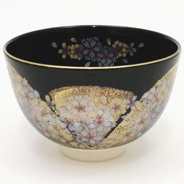 抹茶茶碗 黒仁清 吉野桜(吉野山) 加藤郷山作