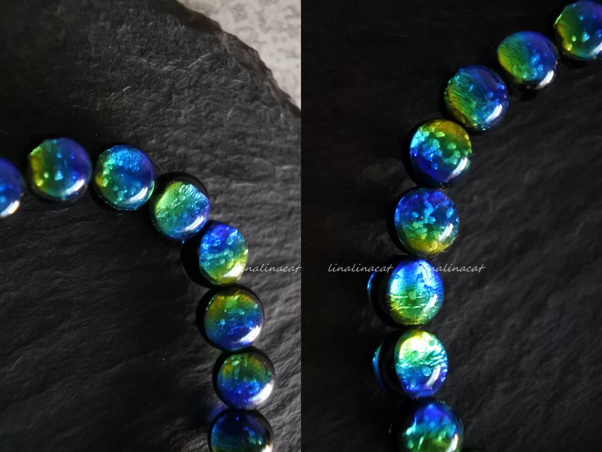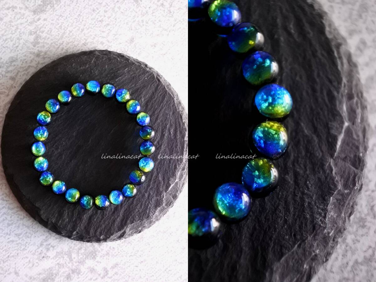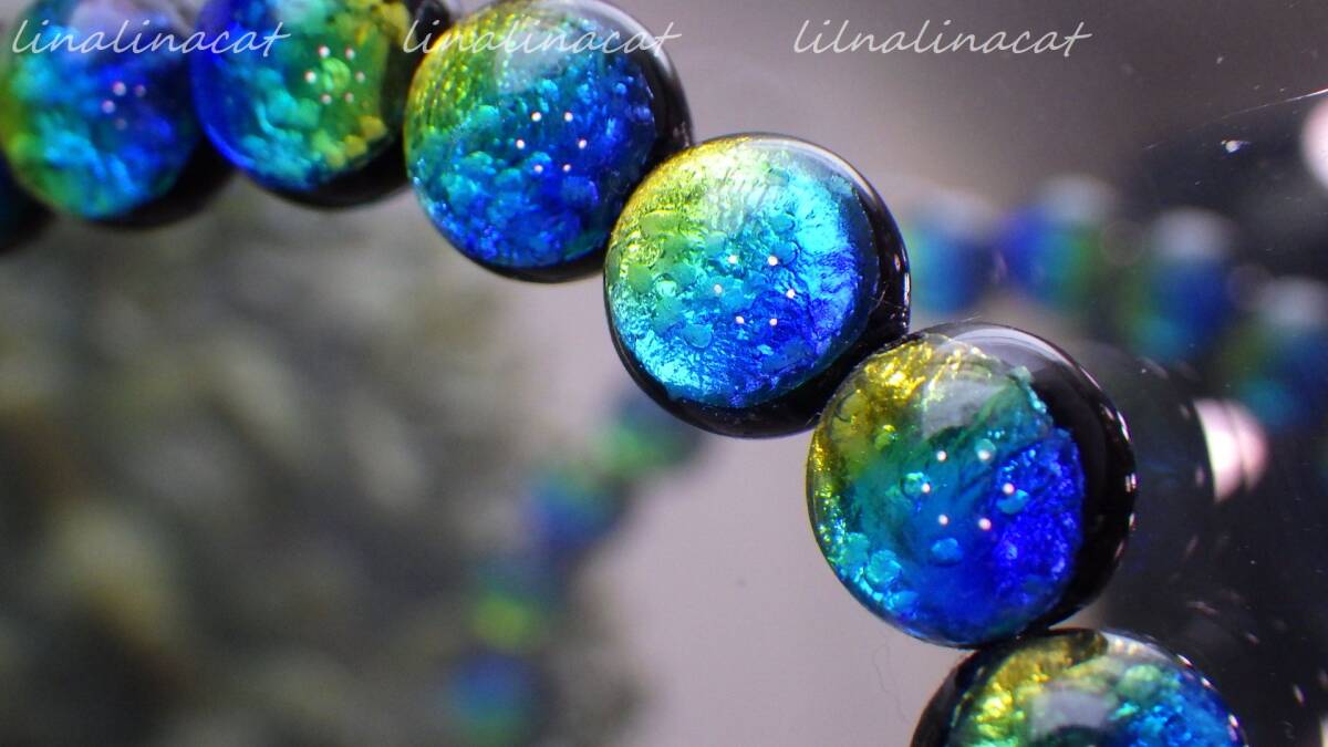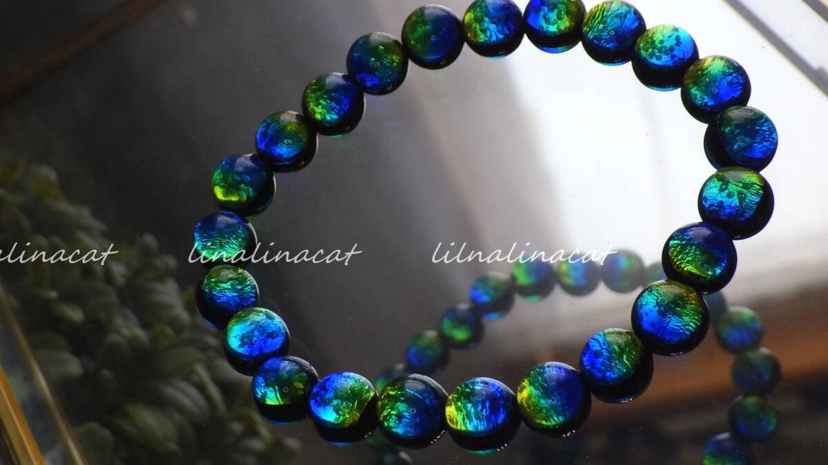 新品 ホタルガラス ブレスレット① ケラマブルー 蓄光 夜光 腕周りサイズ: 15.5cm 沖縄県慶良間諸島に広がるエメラルドグリーンの美しい海をケラマブルーと称し、その美しい海をモチーフにしたホタルガラスです。 日光を蓄え暗闇でほんのりと光る夜光(蓄光)光るタイプです。 時間とともに表情を変える海を思わせる琉球ガラス。 海の底から見上げた立ち昇る泡をとじこめたような美しいお品です。 他にも別シリーズやブレスレットなども出品中です。 ※ホタルガラスとは 沖縄で育まれた手仕事仕上げの美しいガラスで、その深い青色が沖縄の海を感じさせ、お土産として人気のホタルガラスは、とんぼ玉と同じようにバーナーワークと呼ばれる成形技法を用いて作られた穴のあいたガラス玉です 職人がひとつひとつ色の付いたガラスを溶かして鉄心に丸め、水飴のように溶けた状態のガラスに、銀箔(ぎんぱく)を重ね、特殊な技法で美しい色を表現しています 沖縄発祥ではないとんぼ玉の一種であるホタルガラスが、いつ頃から沖縄のお土産として親しまれてきたか明確な記録はありませんが、希少な珊瑚の製品に替わるものということで80年代後半から注目され、深い海を思わせる色彩がたくさんの人の心を掴んだのではないかと云われています ナチュラルなスタイルがお好きな方、天然石がお好きな方などにもお勧めです。 | ||