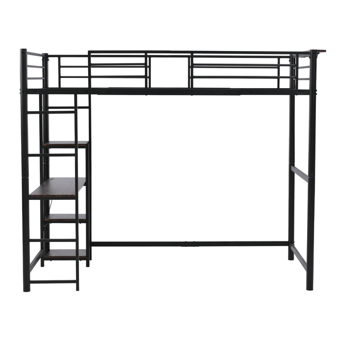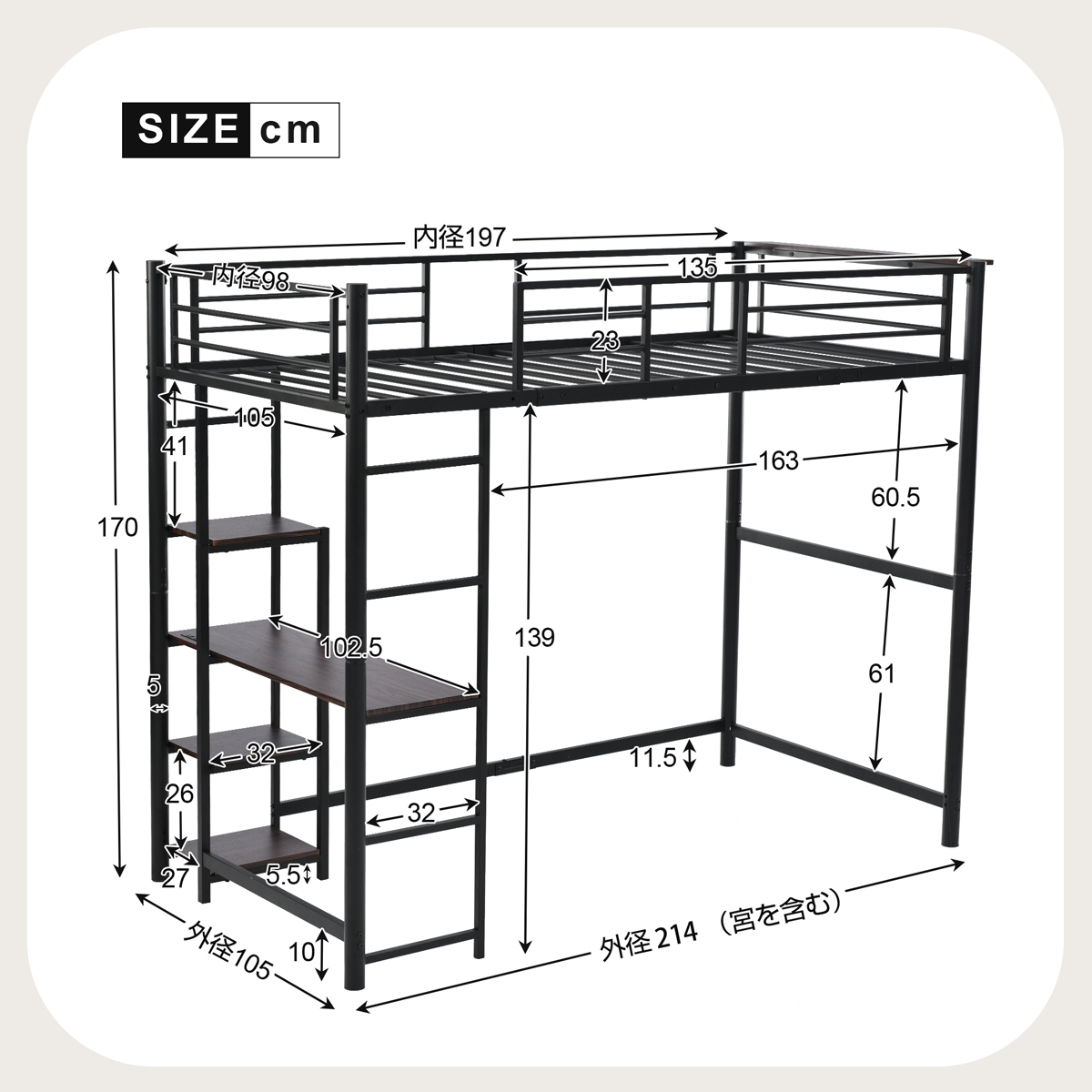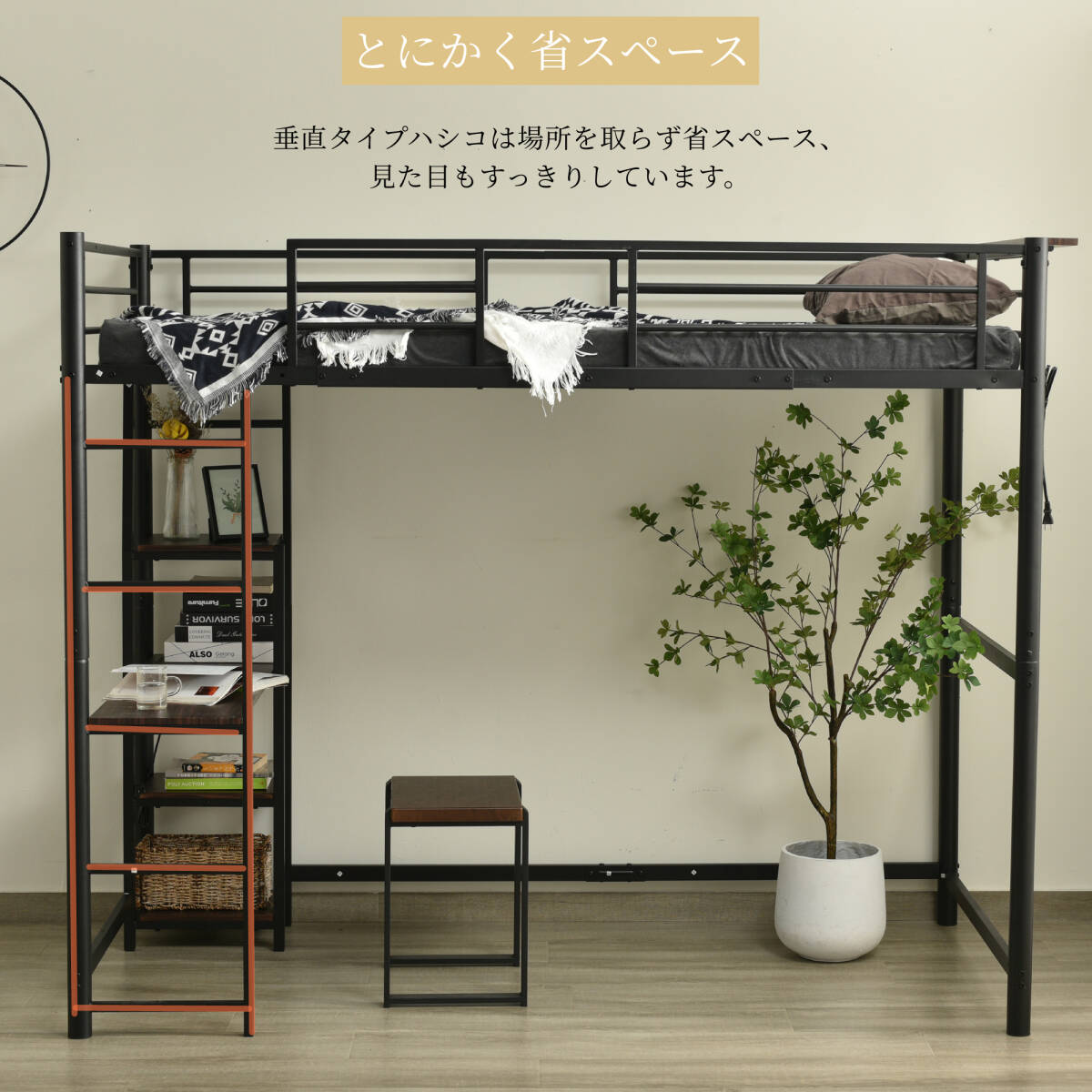 ロフトベッド パイプベッド シングル 木 デスク付き コンセント付き 耐荷重150kg 高さ170cm 収納棚 ロフトベッド ハイタイプ はしご付き