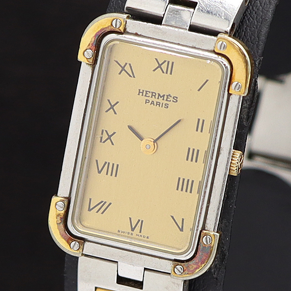 1円 稼働 エルメス クロアジュール QZ ゴールド文字盤 レディース腕時計 2000000 8NBG2 KMR