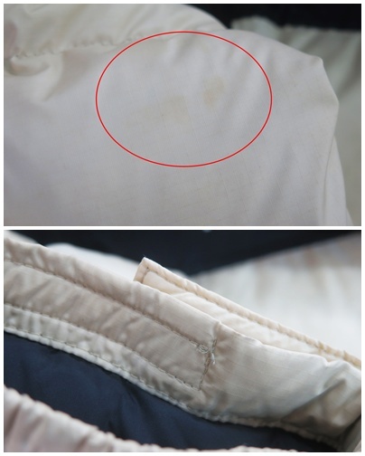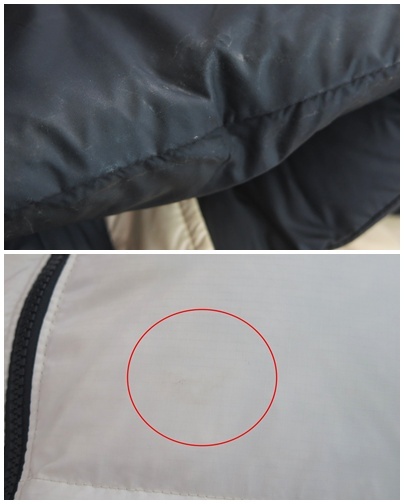 両袖、首回り、ポケット、裾にシミが複数あります。(写真参照)