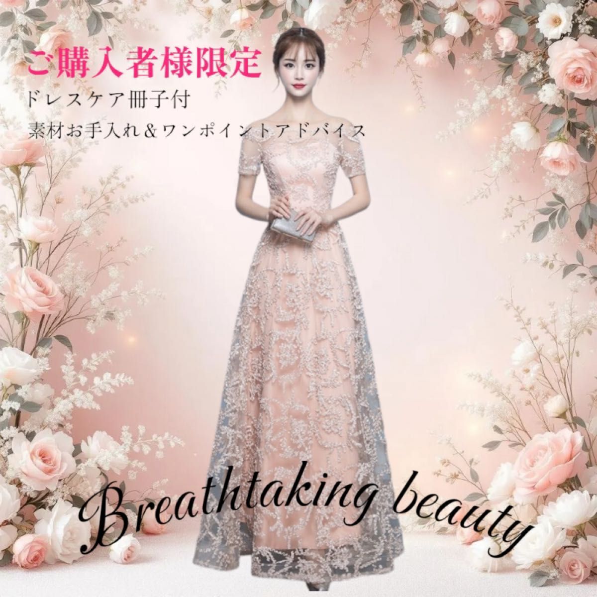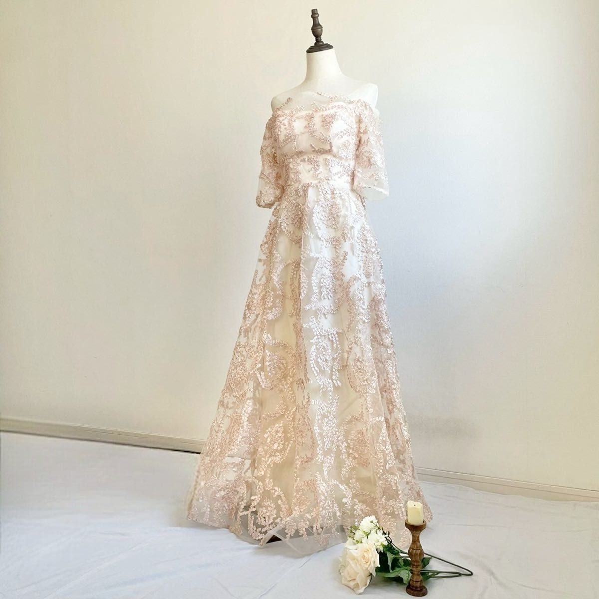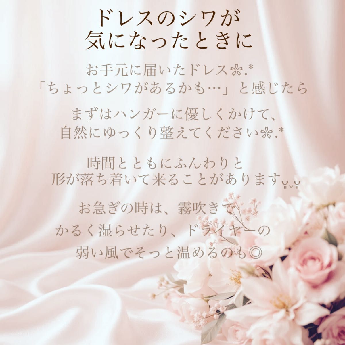 淡いピンクベージュカラーが上品で可憐な印象を与え、特別な一日にふさわしい華やかさを演出します。