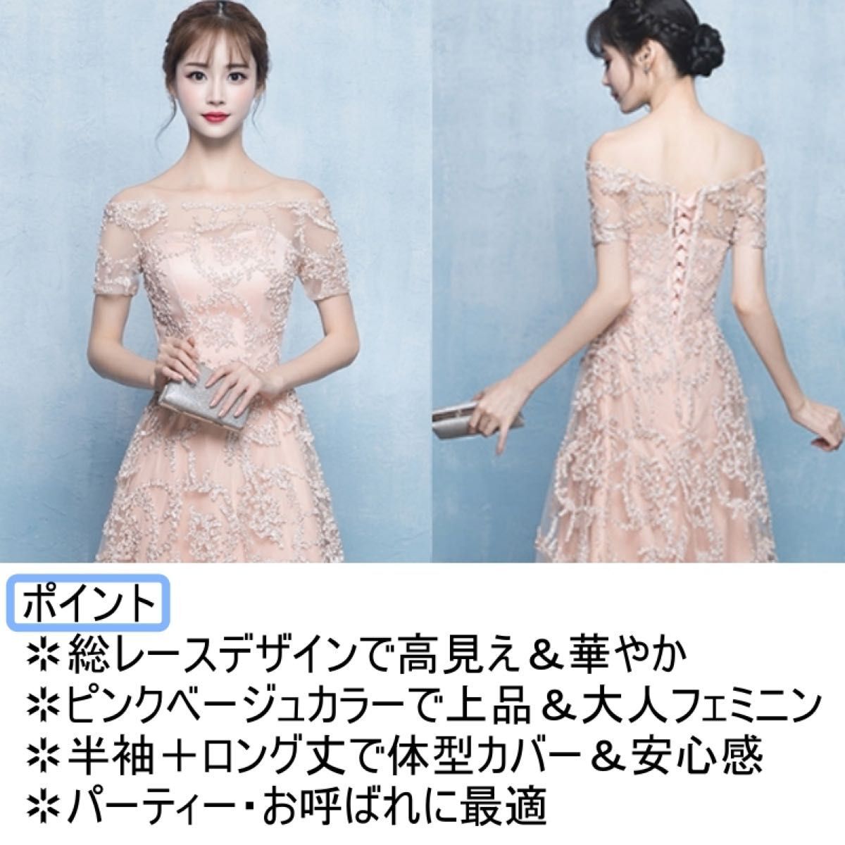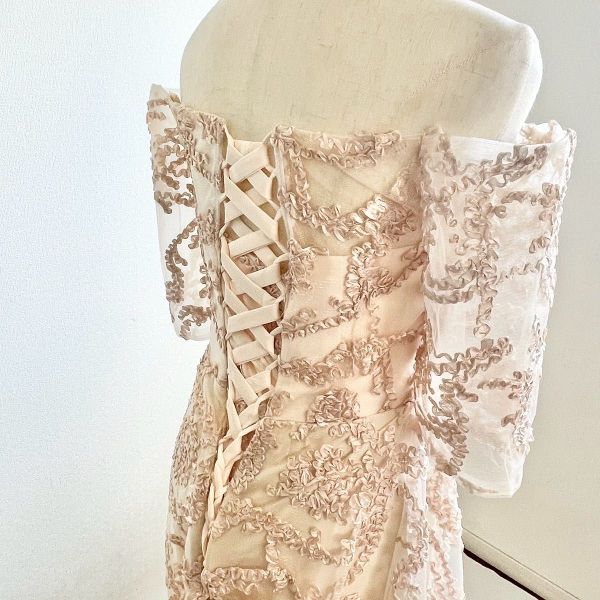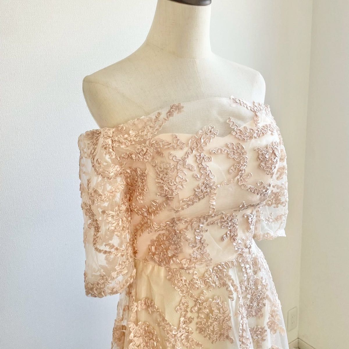 淡いピンクベージュカラーが上品で可憐な印象を与え、特別な一日にふさわしい華やかさを演出します。