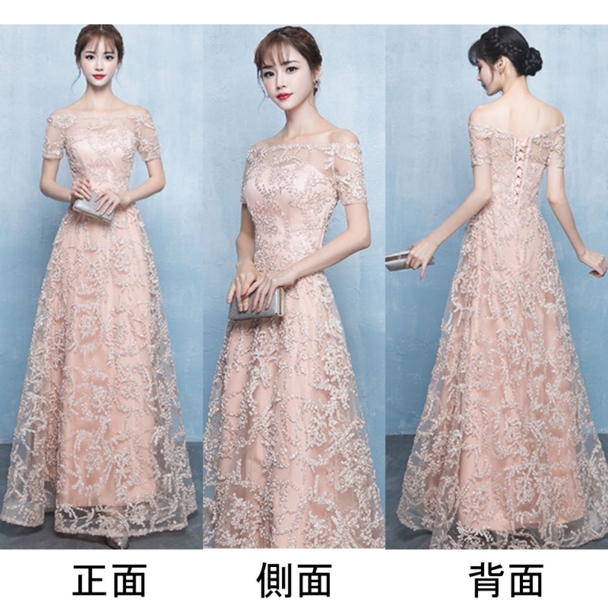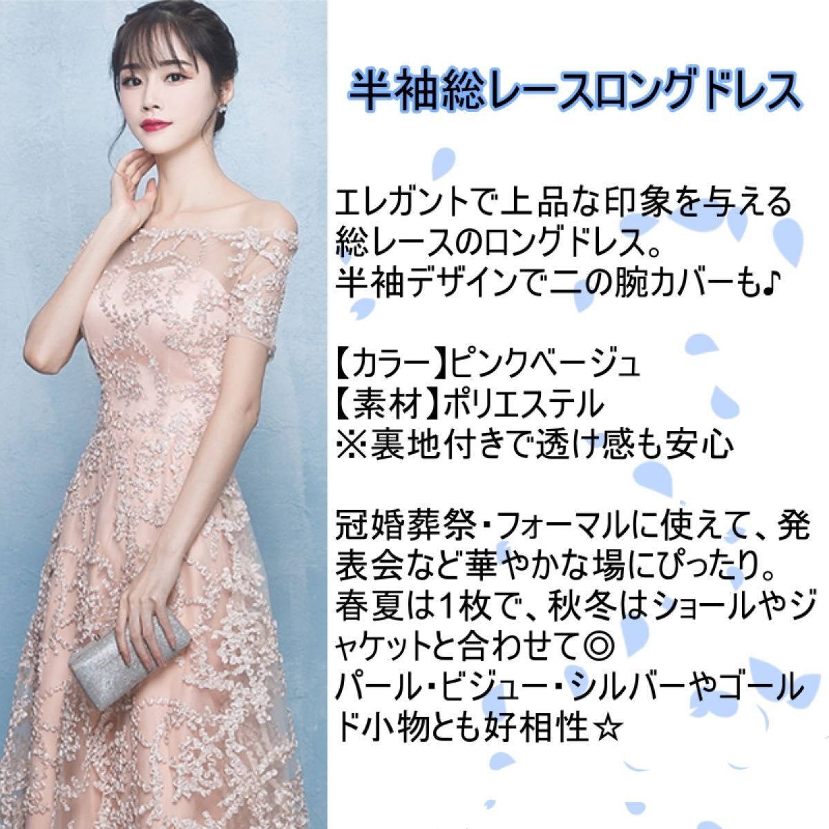 華やかな総レース刺繍が贅沢に施されたAラインロングドレス。