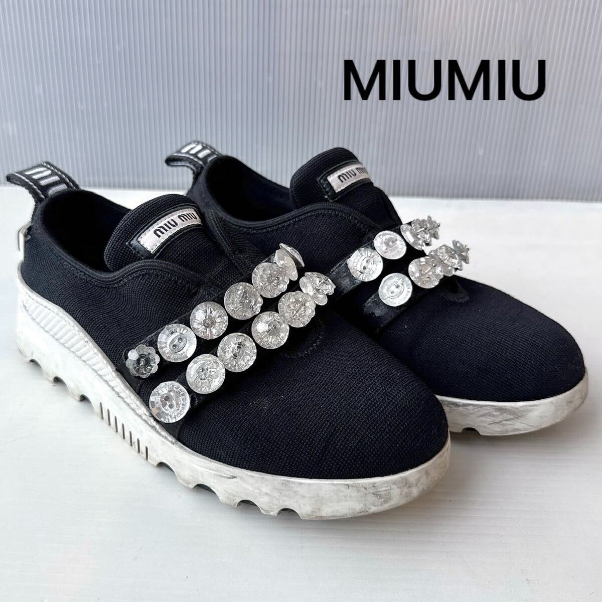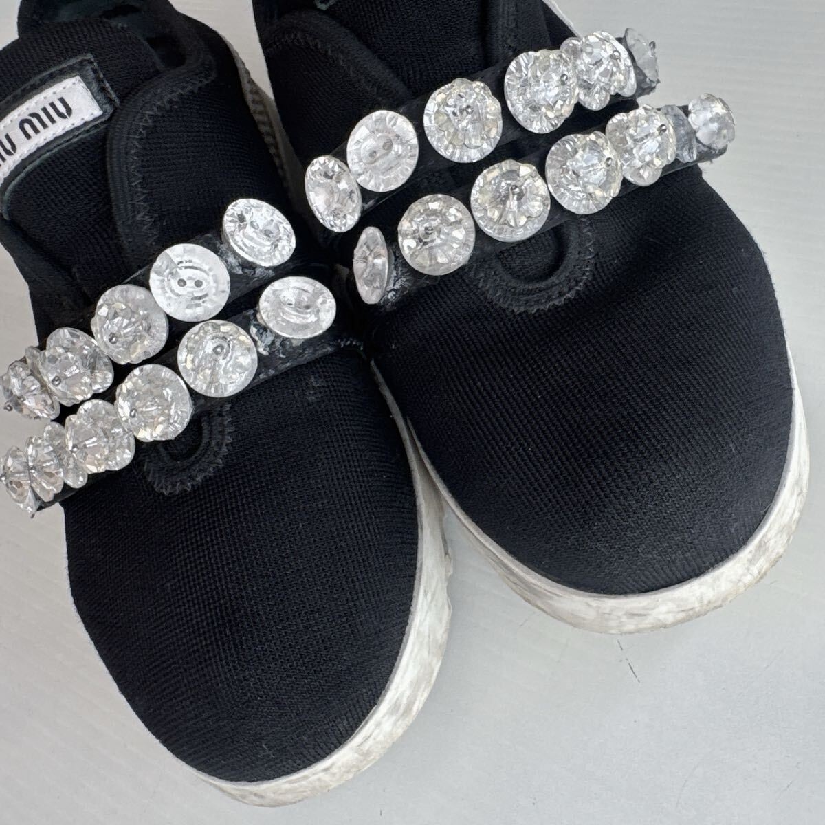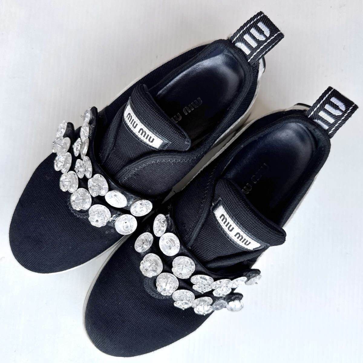 ミュウミュウ ビジュー ニット スニーカー スリッポン ブラック レーディス シューズ 靴 ローカット フラットシューズ パンプス ローファー イタリア製 正規品