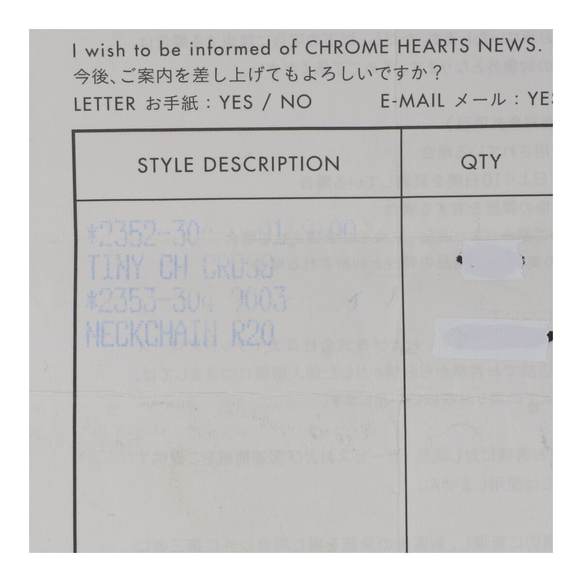 ■Accessories:インボイス原本