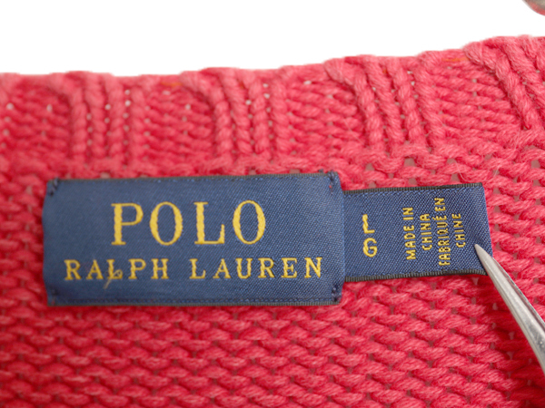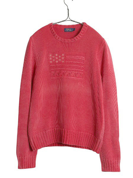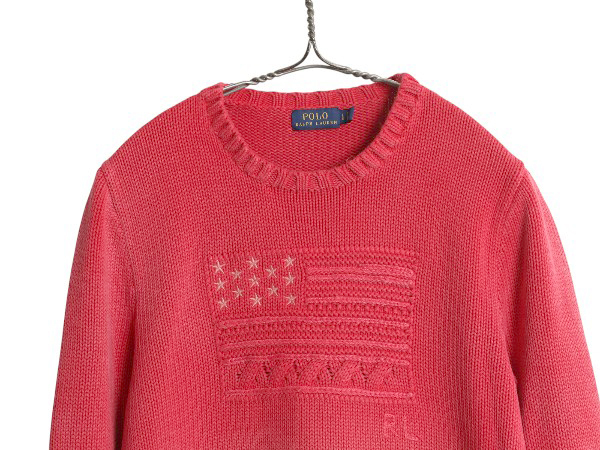 商品名 | ポロ ラルフローレン 星条旗 コットン ニット セーター レディース L / 長袖ニット コットンニット プルオーバー ミドルゲージ 淡い レッド |