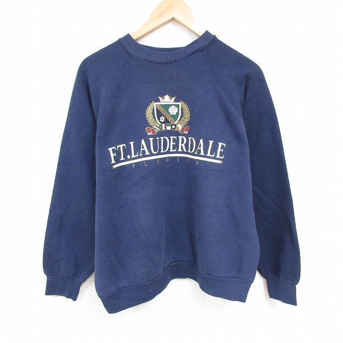 【商品名】 L★古着 フルーツオブザルーム 長袖 スウェット メンズ 90年代 90s フォートローダーデール クルーネック USA製 紺