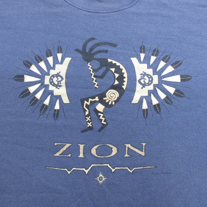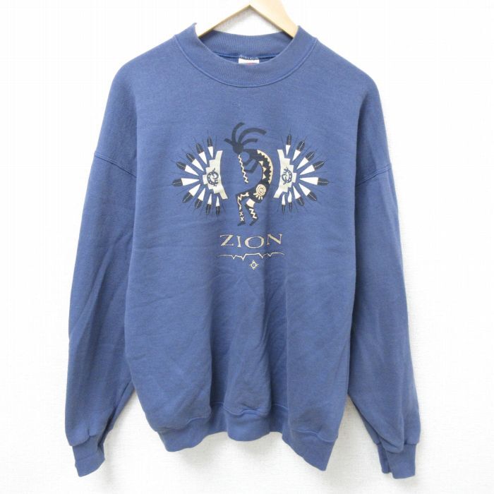 【商品名】 XL★古着 フルーツオブザルーム 長袖 スウェット メンズ 00年代 00s ココペリ ホピ族 クルーネック 薄紺