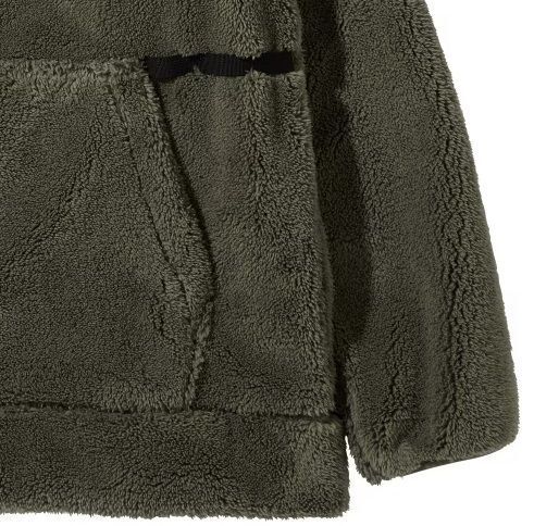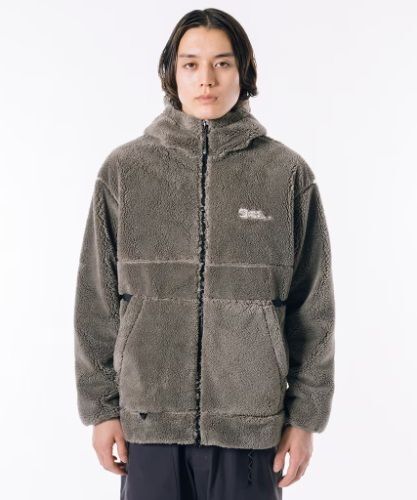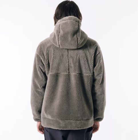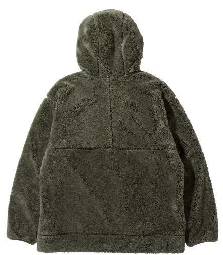 フワッとした優しい風合いが際立つシェルパフリースの表地に、滑らかなタッチ感と高い保温性を誇るマイクロフリースの裏地を装着。さらに中層面には防風ラミネーションを配し、フリースアイテムの弱点である耐風性も高めた3レイヤー仕立てのジップジャケットです。両腰脇のウェビングテープ、右裾脇のループもポイントに。